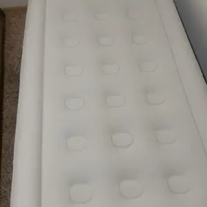 BUILT-IN HIGH CAPACITY PUMP: The air bed can be inflated/deflated in minutes at the push of a button, thanks to the built-in 110V high power electric air pump. Inflating time for different sizes of blowup air mattress: 22in queen size - 240s; 18in queen size - 200s; 16in queen size - 150s; 18in twin size - 130s; 16in twin size - 110s.