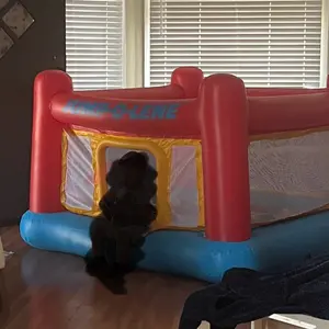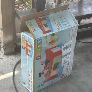 The bouncer is easy to clean with soapy water. It is built with strong footings to ensure stability, preventing tipping or wobbling. The see-through design helps parents keep an eye on the fun. Perfect for kids to burn off energy and develop physical skills.