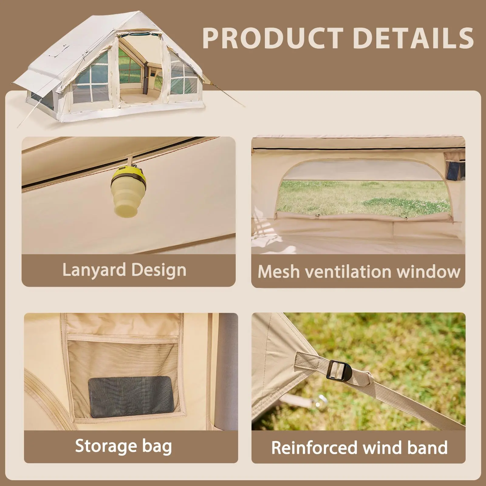 【Hot Tent with Stove Jack】This blow up tent features a specially designed stove jack, allowing you to safely use a wood stove for heating or cooking inside the tent during cold weather without worrying about smoke buildup.The perfect tent for all seasons.