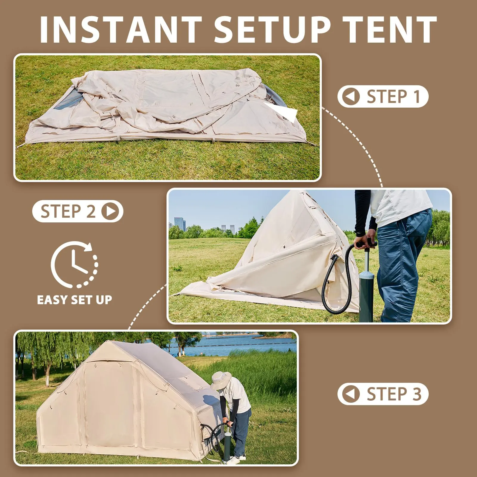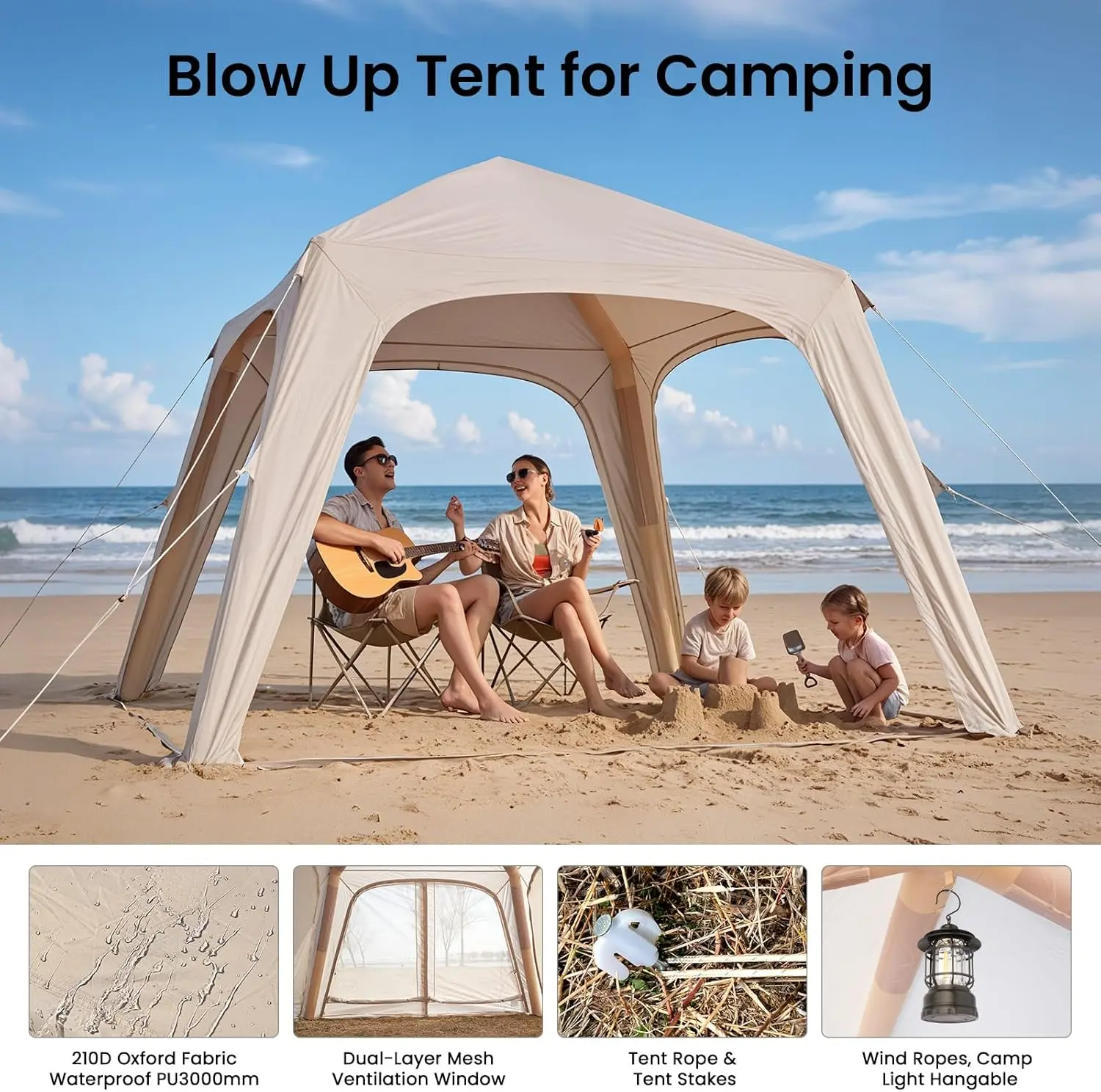 【5min Easy Setup Inflatable Tent】The inflatable camping tent features an Innovative Inflatable beam frame,no need for complex rods; setup and storage are a breeze. It comes with a High-Pressure Fast Inflation Air Pump, and you can have the tent ready in just 5 minutes. Compared to traditional camping tents, it is much simpler to set up and quicker to pack away.