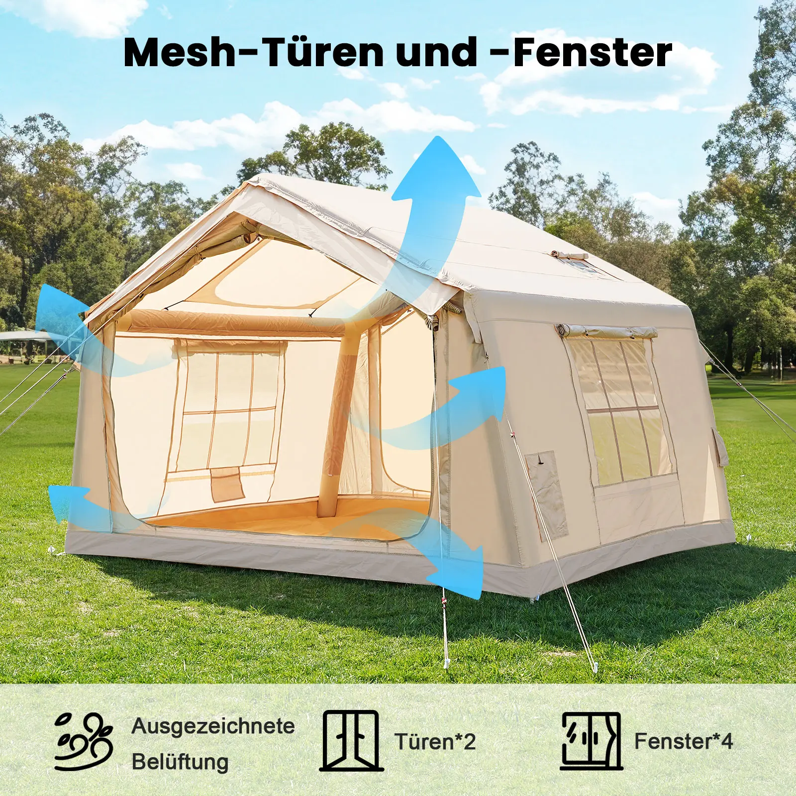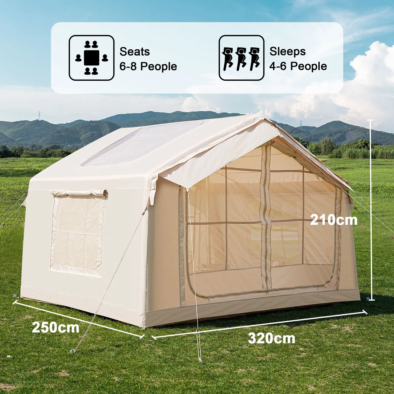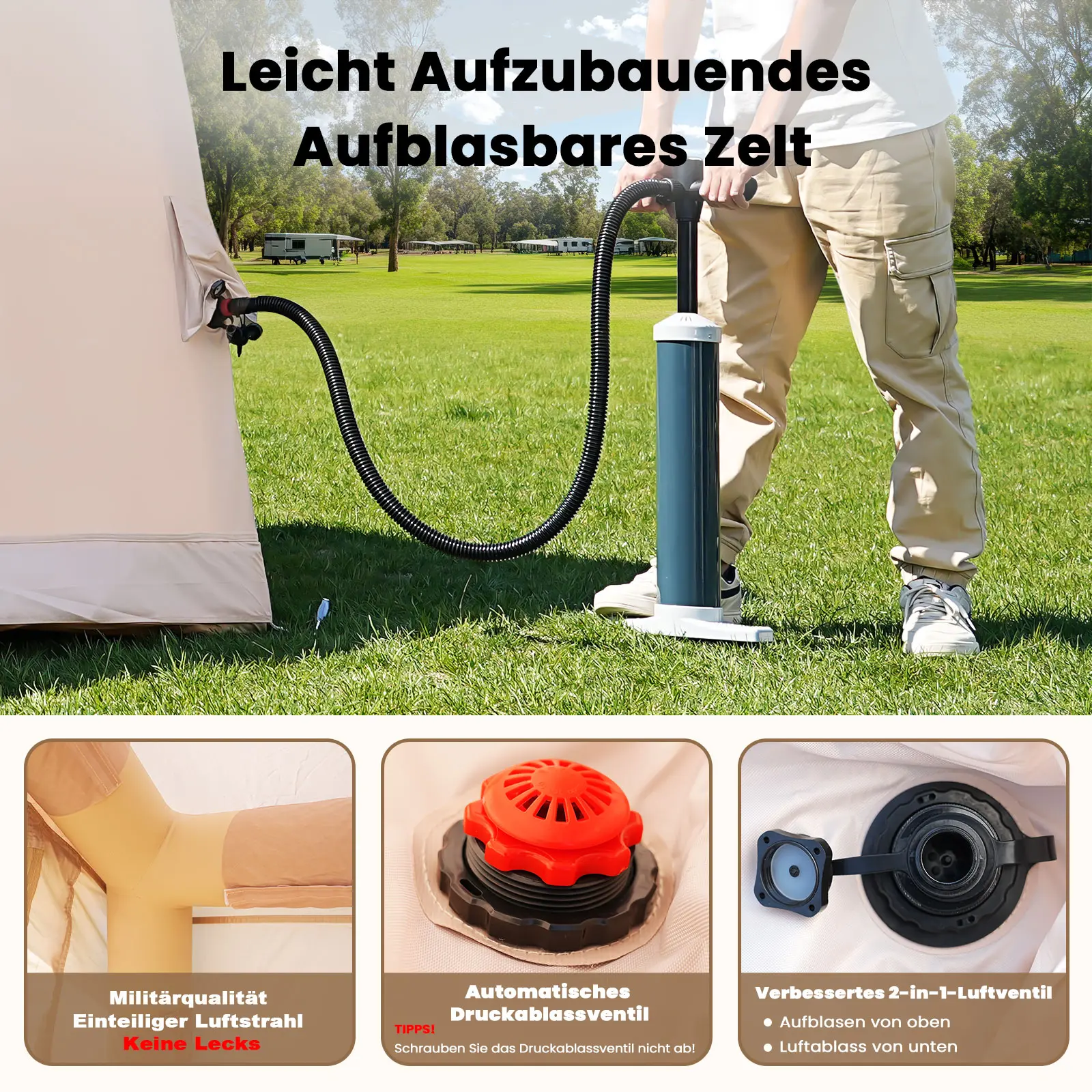 Easy to Set up and Store Blow-Up Tent: One person can easily assemble it alone. Compared to traditional pole tents, no complicated poles are needed. Inflate in just 5 minutes for your luxurious tent. This saves time in setting up camp, allowing for more time to enjoy the outdoors. When deflated, the tent packs down to a compact size, complete with a storage bag.