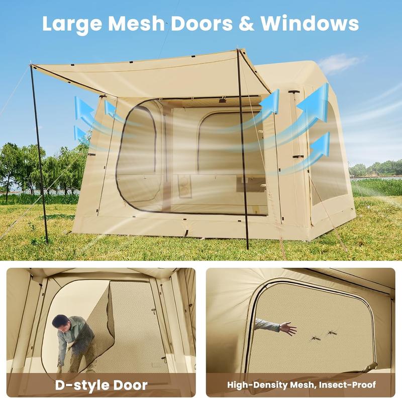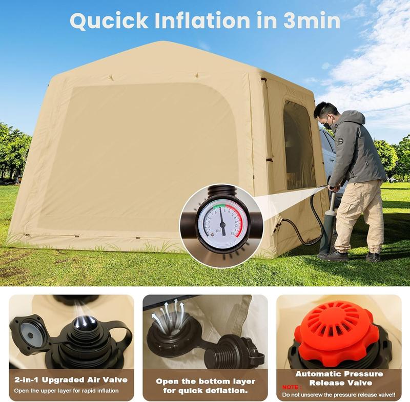【5min Easy Setup Blow Up Tent with Air Pump】: Package comes with a high-efficiency air pump for quick and easy setup. No poles needed – simply inflate the tent in 5 minutes and you're ready to camp! Ideal for beginners and families.