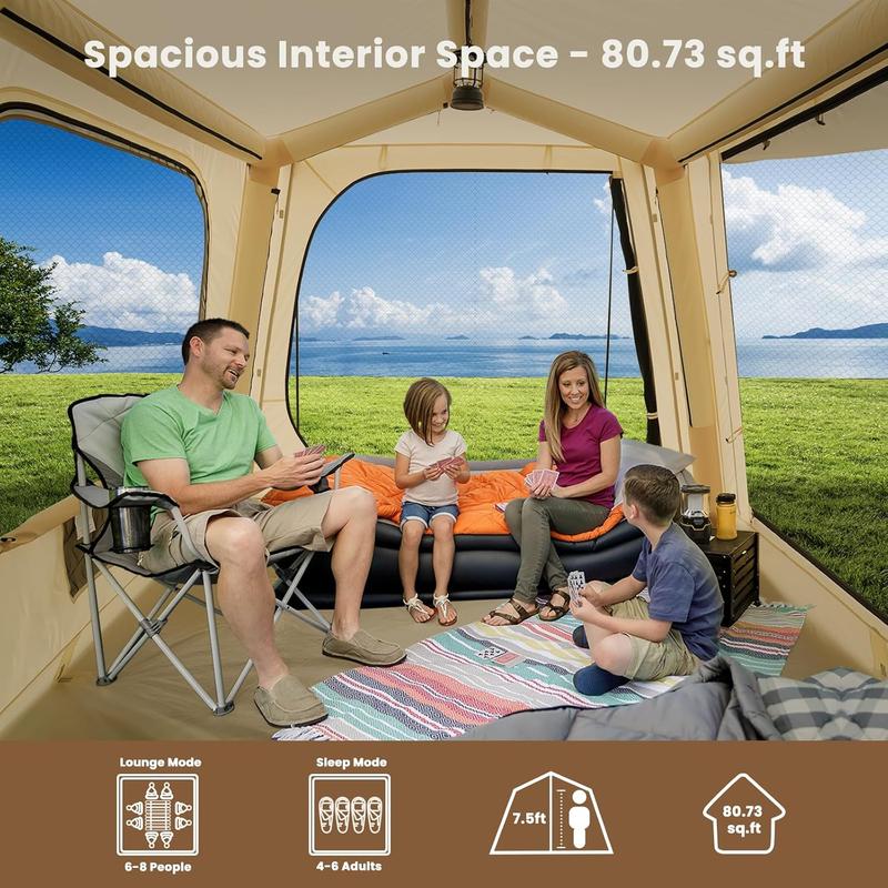 【Large Inflatable Camping Tent 4-6 People】: Spacious Interior with a 9.8ft x 8.2ft footprint and a 6.9ft center height, this tent offers ample space for adults to move freely without bending. Enjoy a comfortable and roomy camping experience!