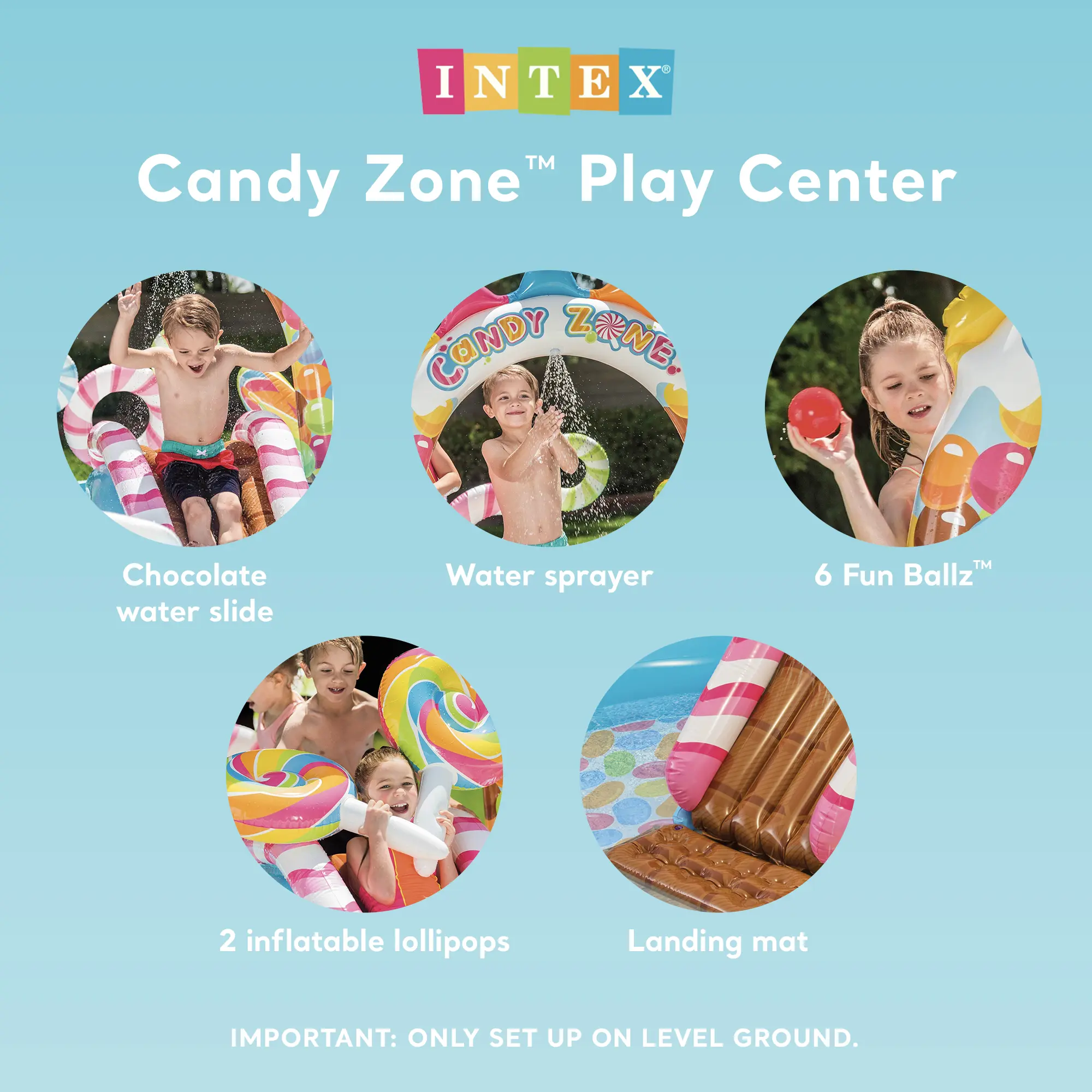 ·Includes 2 inflatable lollipops + 6 play balls