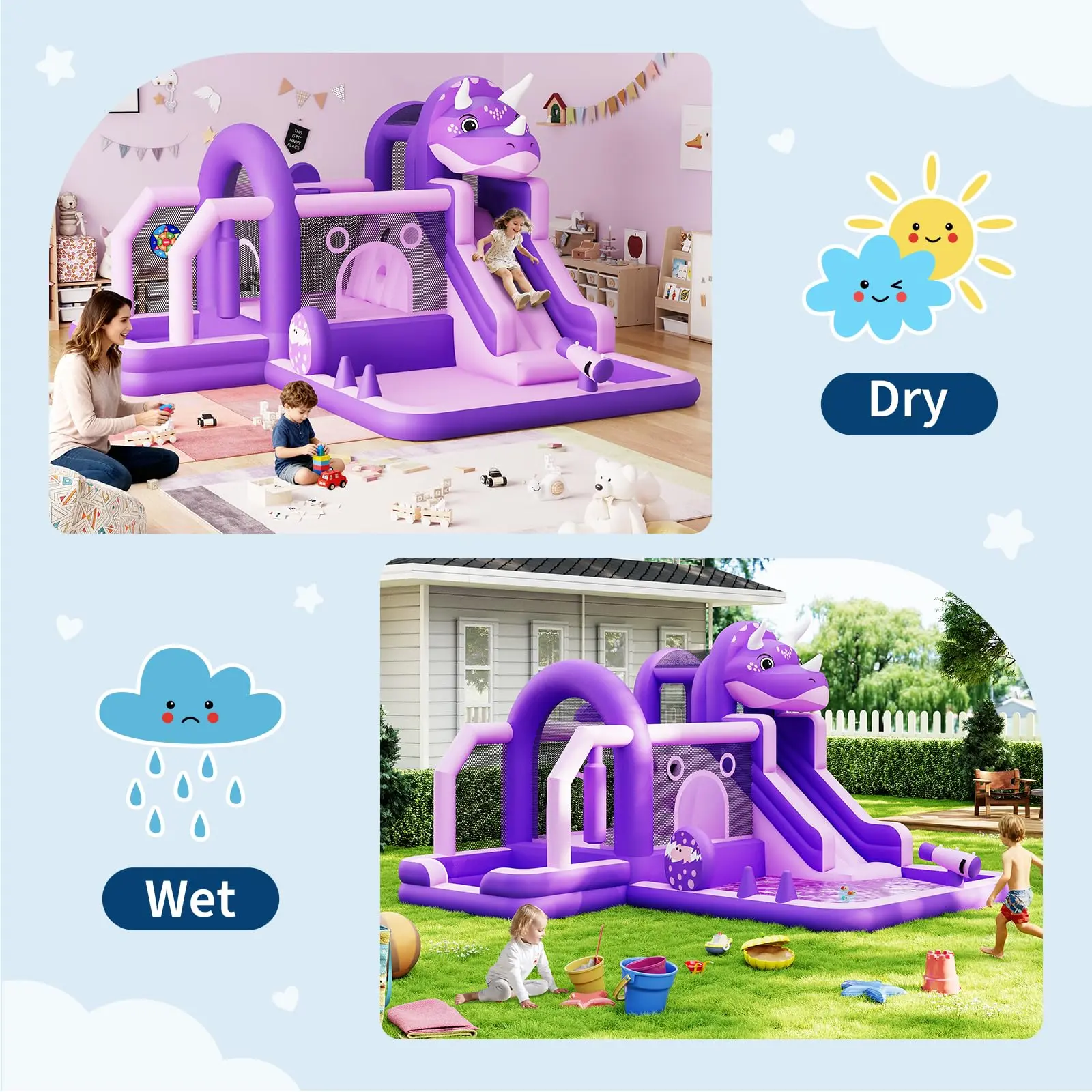 Perfect Gift for Kids: This inflatable dinosaur bounce house makes the great gift for birthdays, holidays, or any special occasion. Whether set up indoors or outdoors, it guarantees endless fun and laughter for children.