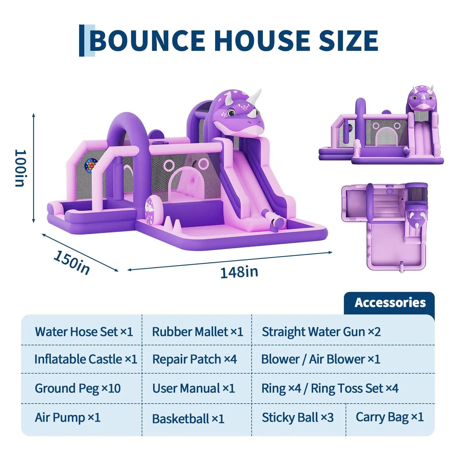 Quick Setup & Easy Storage: Inflates in under 3 minutes with the included heavy-duty air blower. Comes with repair patches, lawn stakes, and a carrying bag for easy setup, transport, and storage — perfect for your backyard or park.