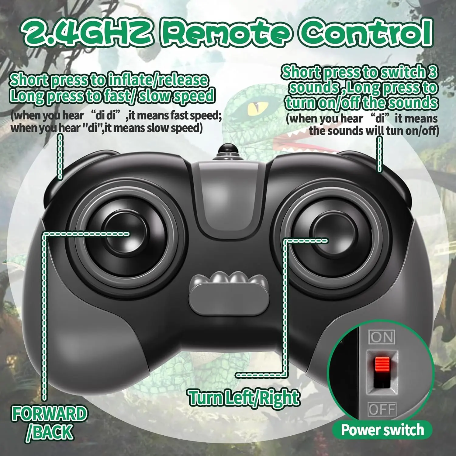 【Remote Control Function】:Use 2.4GHz Multi-Function Remote Control--Go forward/ Backward and 360°Rotation.Two wheels can support dinosaurs to stand independently and walking.very responsive and quickly.