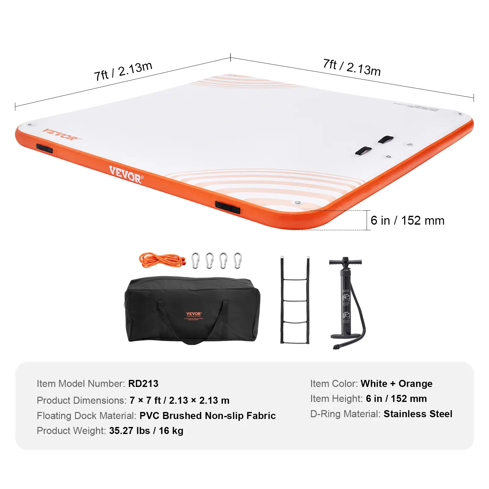 • Lightweight & Portable: Measuring 7*7 ft, our spacious floating dock platform offers ample space for relaxation. Lightweight and foldable, it can be effortlessly transported in the included carrying bag. With HR inflation valves, 6-inch thickened design and reinforced bonding, revel in secure playtime without breakage or leakage.