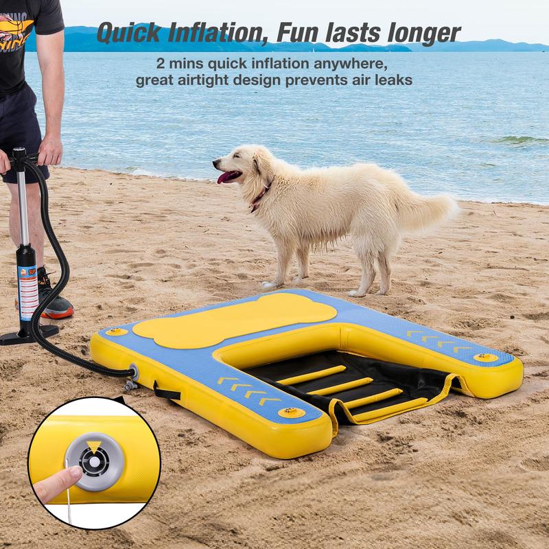 ·Portable & Easy Storage with Travel Bag: Folds neatly into the included carrying case (20 x 12 x 10 inches, 13 lbs) for effortless transport. 2 non-slip handles make dragging a breeze—this inflatable dog water safety ramp is ideal for pool days, beach trips, or boating!