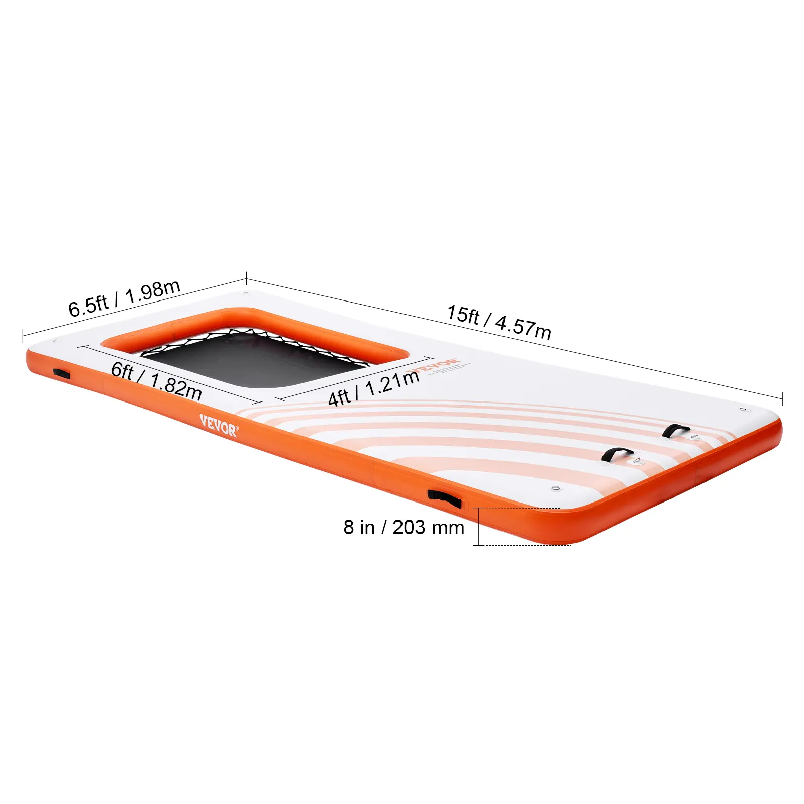 • Enjoy Pleasant Water Fun: Immerse yourself in summer water activities with VEVOR floating dock platform! Engineered from high-density 2700g/㎡ PVC brushed fabric, it offers a non-slip and durable surface for stability and safety. With HR inflation valves, 8-inch thickened design and reinforced bonding, revel in secure playtime without breakage or leaks.