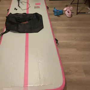 My daughter is in tumbling and has been struggling learning her back walk over. She's learning to do combos and go into a back hand spring. Perfect for days we don't have practice. This comes with a pump and a travel bag!! Material: VERY heavy and thick material