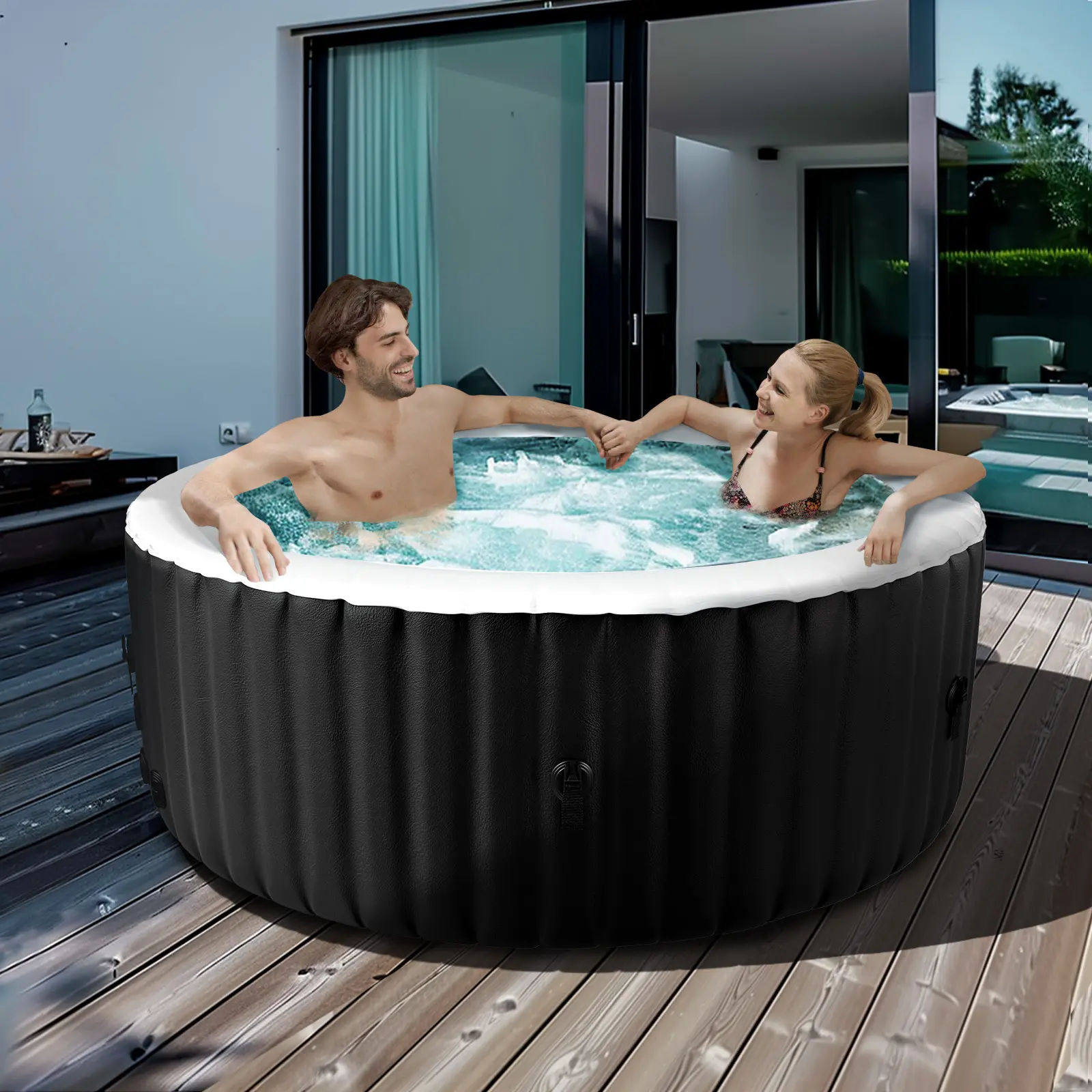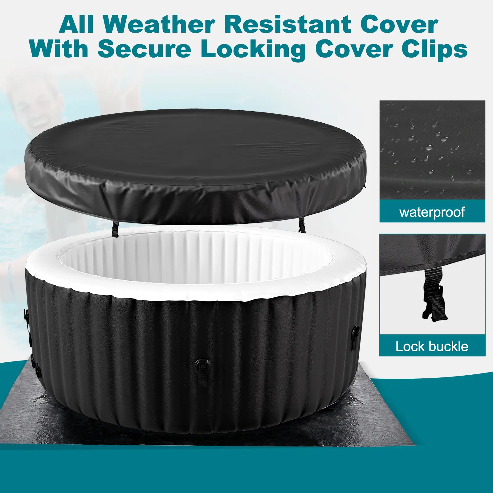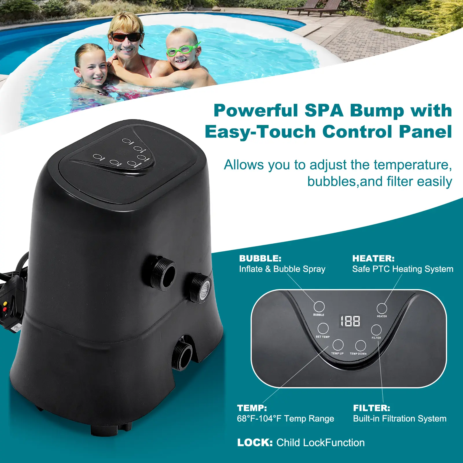 【USER-FRIENDLY OPERATION】 - The portable hot tub has a built-in air pump that makes it easy to inflate & deflate within minutes to click the "Bubble" button. The hot tub also features auto child lock and frozen protection for peace of mind. Furthermore, it can be easily deflated and folded within minutes, simplifying storage