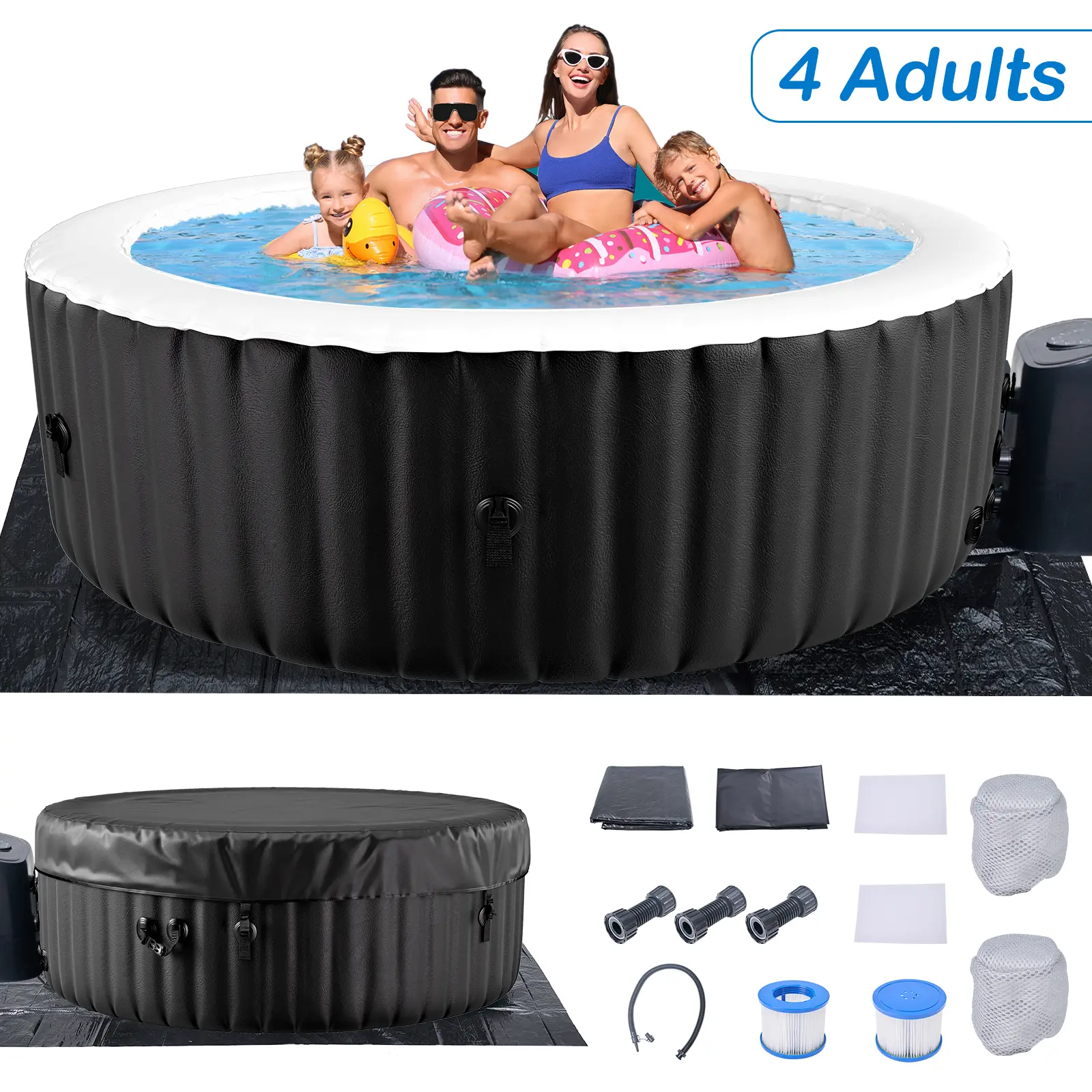【DURABLE CONSTRUCTION】 - Designed for outdoor use, the portable hot tub features reinforced drop stitch walls and a bottom crafted from sturdy PVC, offering resistance against punctures, tears, and fading. Additionally, a durable PE ground cloth provides protection against abrasions from sharp rocks