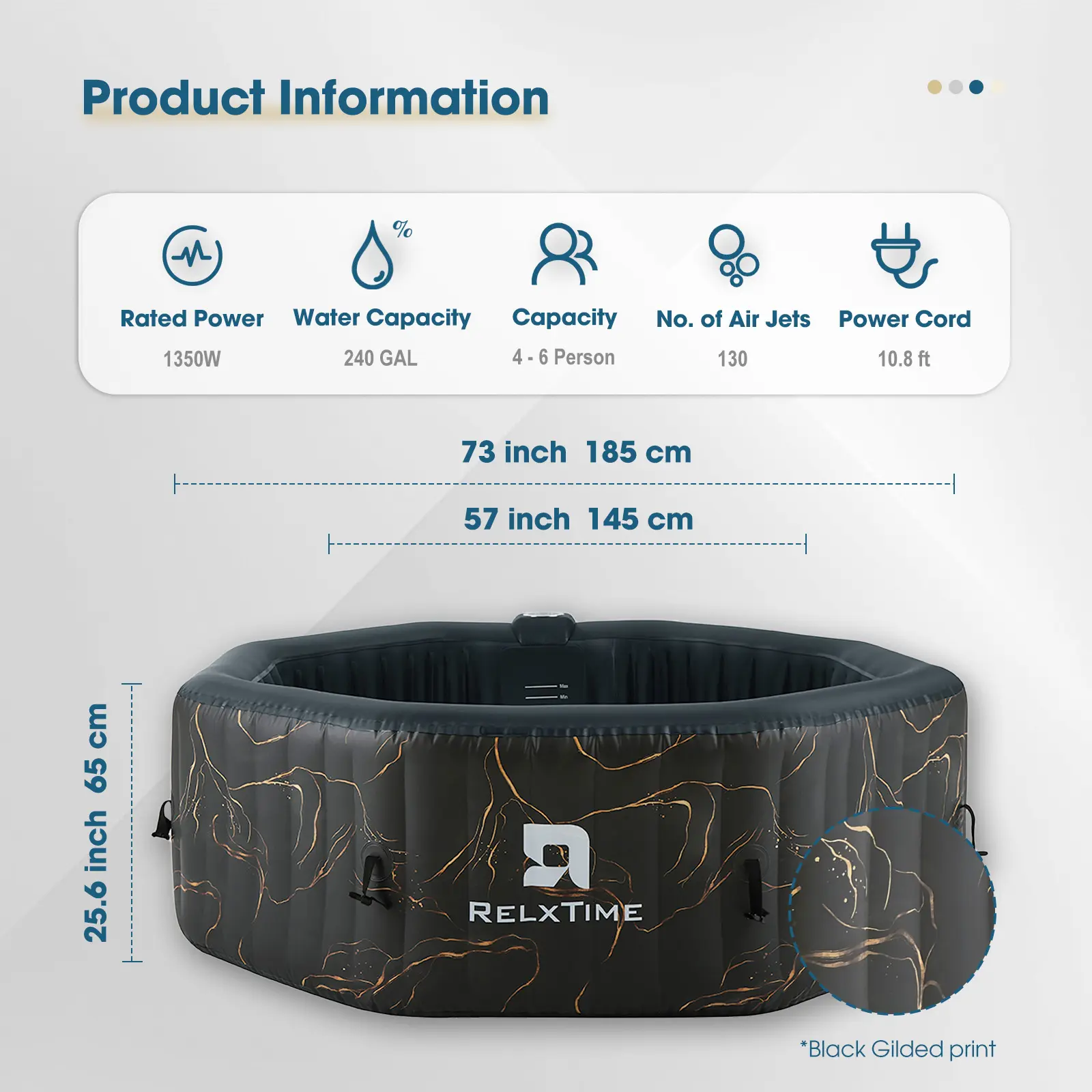 DURABLE BEAM CONSTRUCTION: Durable laminated PVC material portable bathtubs feature vertical “I-beam” construction, making the walls strong and resistant to scratches and punctures, ensuring your hot tub retains its shape and stability. All RELXTIME jetted spas are CE/GS/ETL/EMC/UKCA/REACH certified.