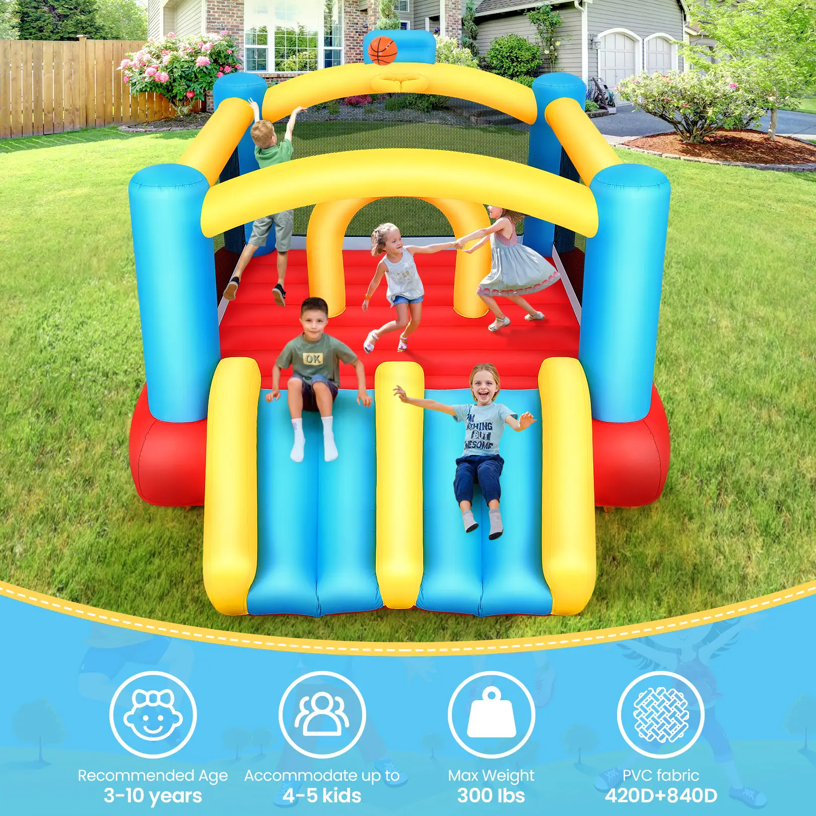 AKEYDIY Inflatable Bounce Castle Dual Slides Jumping Bouncer