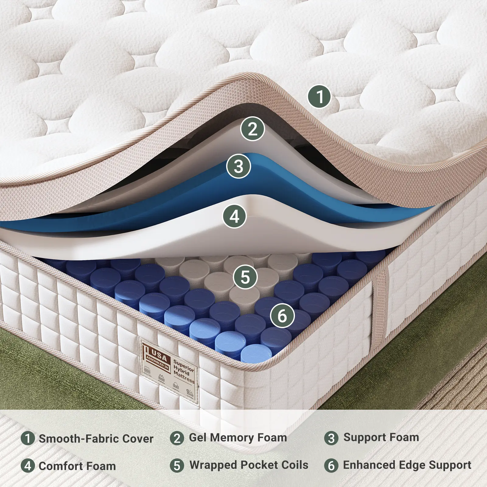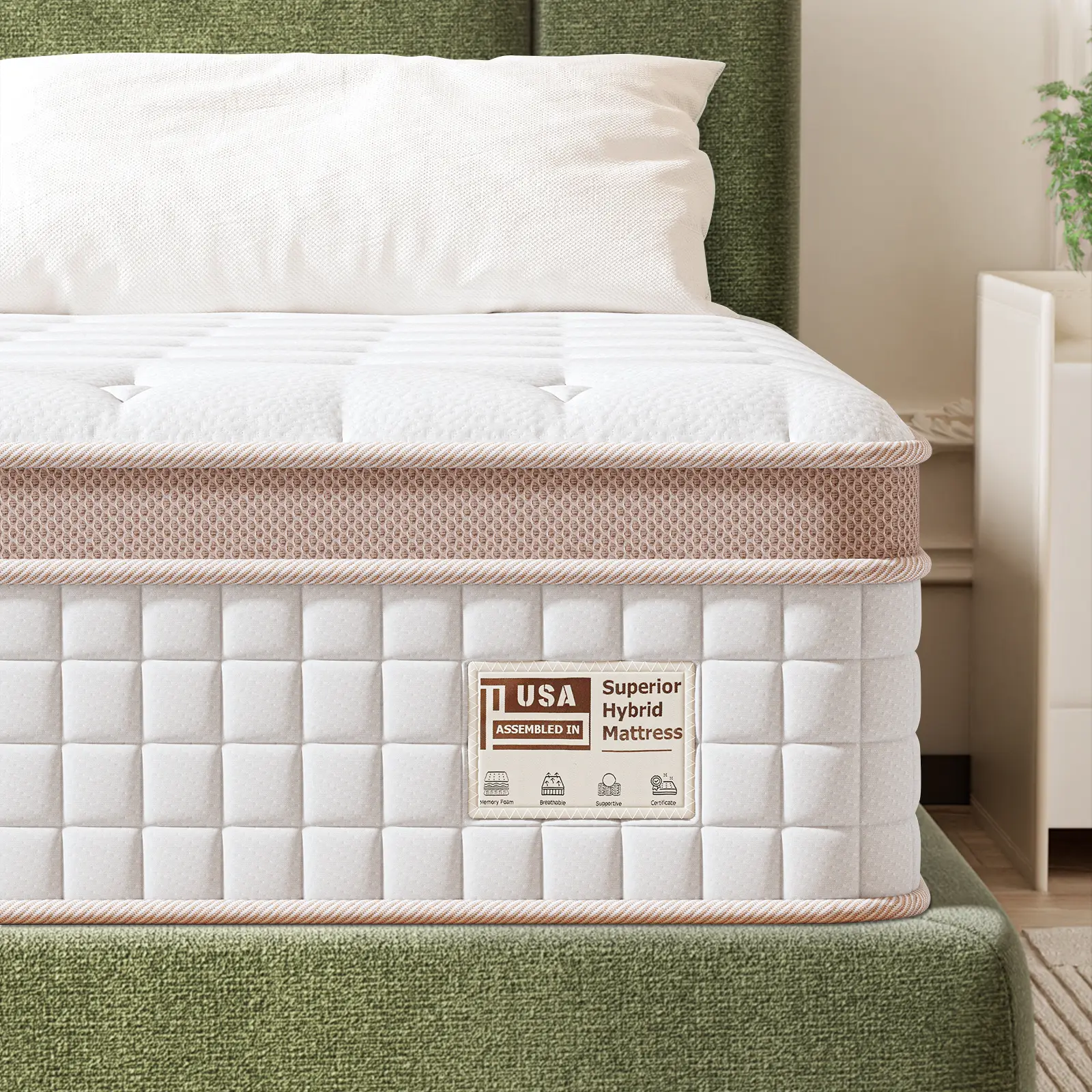 ·[ Enhanced Sleep Quality, Pain Minimized ]: This hybrid mattress blends traditional spring support with luxurious foam layers, offering a firm sleeping surface that aligns the spine and evenly distributes weight. Say goodbye to pressure points and enjoy pain-free, restorative sleep on your mattress.