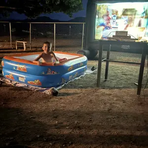 Imagine transforming your backyard into a blockbuster outdoor theater in minutes! The VEVOR Inflatable Movie Screen stretches a massive 24 feet wide, delivering a stunning 16:9 aspect ratio perfect for family movie nights, parties, or special events. Crafted from high-strength 600DD Oxford fabric, this screen resists stains and won’t warp, ensuring crystal-clear images every time. Setup is a breeze—just plug in the powerful yet quiet 360W air blower and watch it inflate in about a minute. The screen stays securely in place thanks to a smart triangular base, ropes, and yard stakes, even on breezy evenings. Whether you prefer front or rear projection, this versatile screen has you covered. When the fun’s over, it deflates quickly, folds up compactly, and fits in the handy carry bag for easy storage and transport. Ready to host unforgettable outdoor movie nights? Grab this inflatable screen and start your cinematic adventure today!