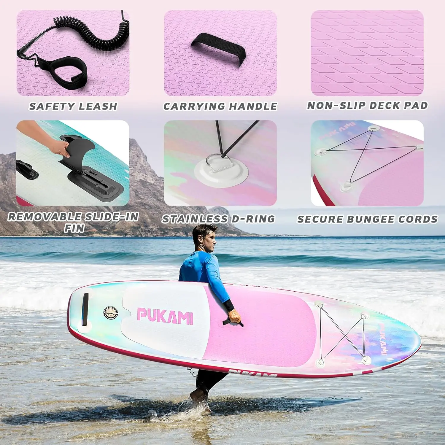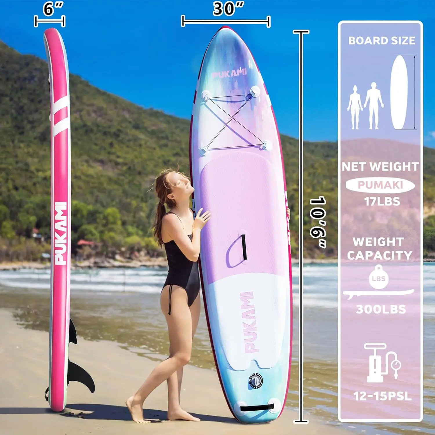 ·Durable & Sturdy: PUKAMI Paddle Board is made of high level military grade ultra-lightweight PVC material for better compression resistance and durability, making them the most durable lightweight paddle boards on the market, with a load capacity of up to 300lbs. 10'6" x 30‘ x 6’ paddle board also come with non-slip deck pads for improved stability and balance when standing up, so you can enjoy your surfing activities without any worries