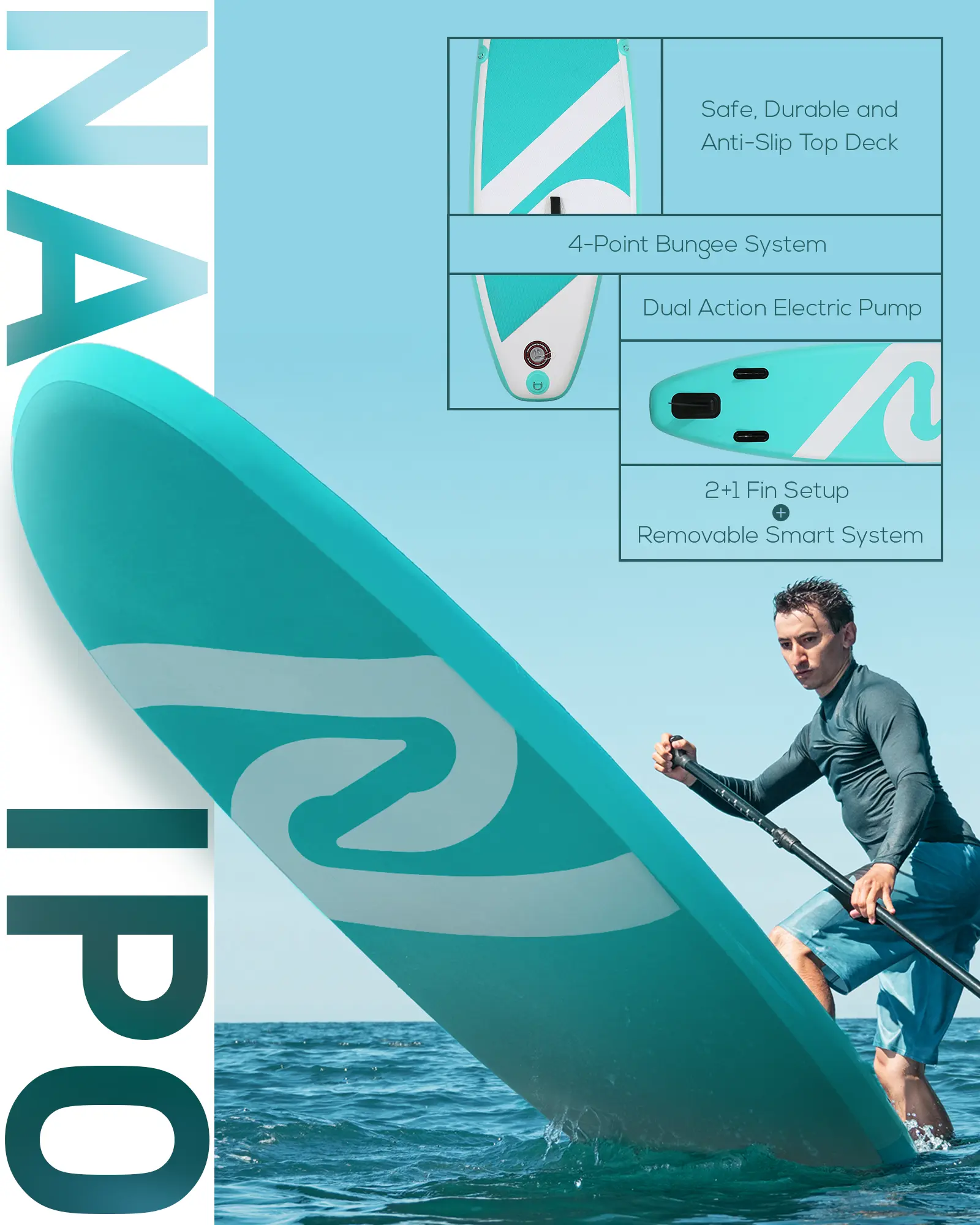 ·【Stable & Durable Paddle Board】The paddle board features high-quality and military-grade material, which is super light and anti-slip. And this paddle board is made of double-layer PVC deck and drop stitch technology, making surfing on paddle board inflatable safe and steady.