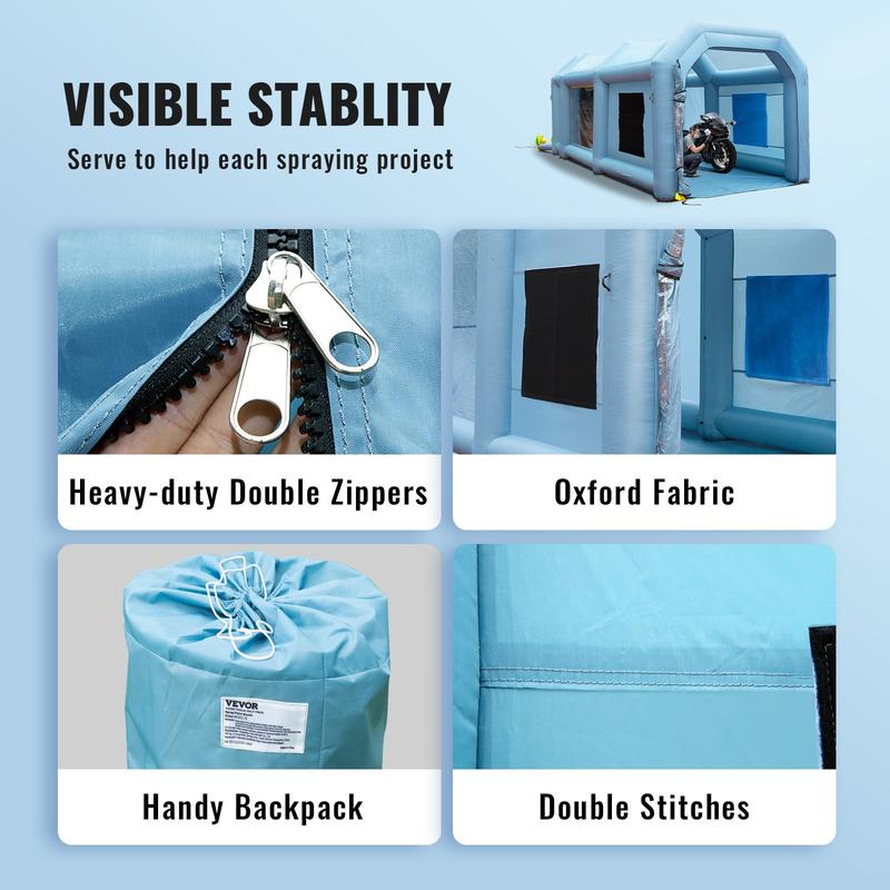 VEVOR, the tool expert around you. The inflatable paint booth is made of 201D oxford fabric and PVC material, durable and dirt tolerant. An ideal choice for furniture painting, outdoor camping, etc.