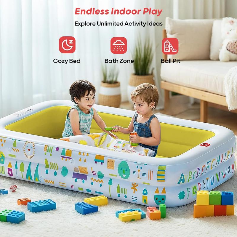 ·Durable & Safe Materials – Crafted from 10% thicker, non-toxic PVC, this inflatable pool resists punctures and wear, ensuring a long-lasting and safe playtime experience. Built to withstand active toddlers, it's free from harmful chemicals, making it safe for children aged 1-6 years.