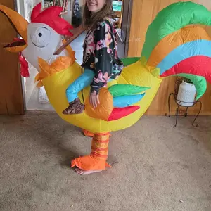 ·One Size Fits All: This rooster blow up costume is specially designed for children's sizes, with heights up to 4'7" , the inflatable suit fits the child's body perfectly!