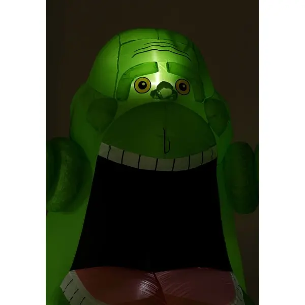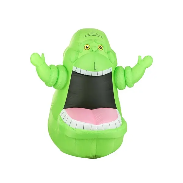 Celebrate any spooky season with this officially licensed Ghostbusters 5ft Inflatable Slimer Decoration! This lovely bit of movie decor unrolls into a bright green buddy who comes to life thanks to a fan. Set it up, flip the switch, and watch Slimer arrive in style. Loops behind his arms allow you to stake him in place and a zipper at the base makes it easy to deflate the decoration when it is time to store him. (No ghost traps required!)