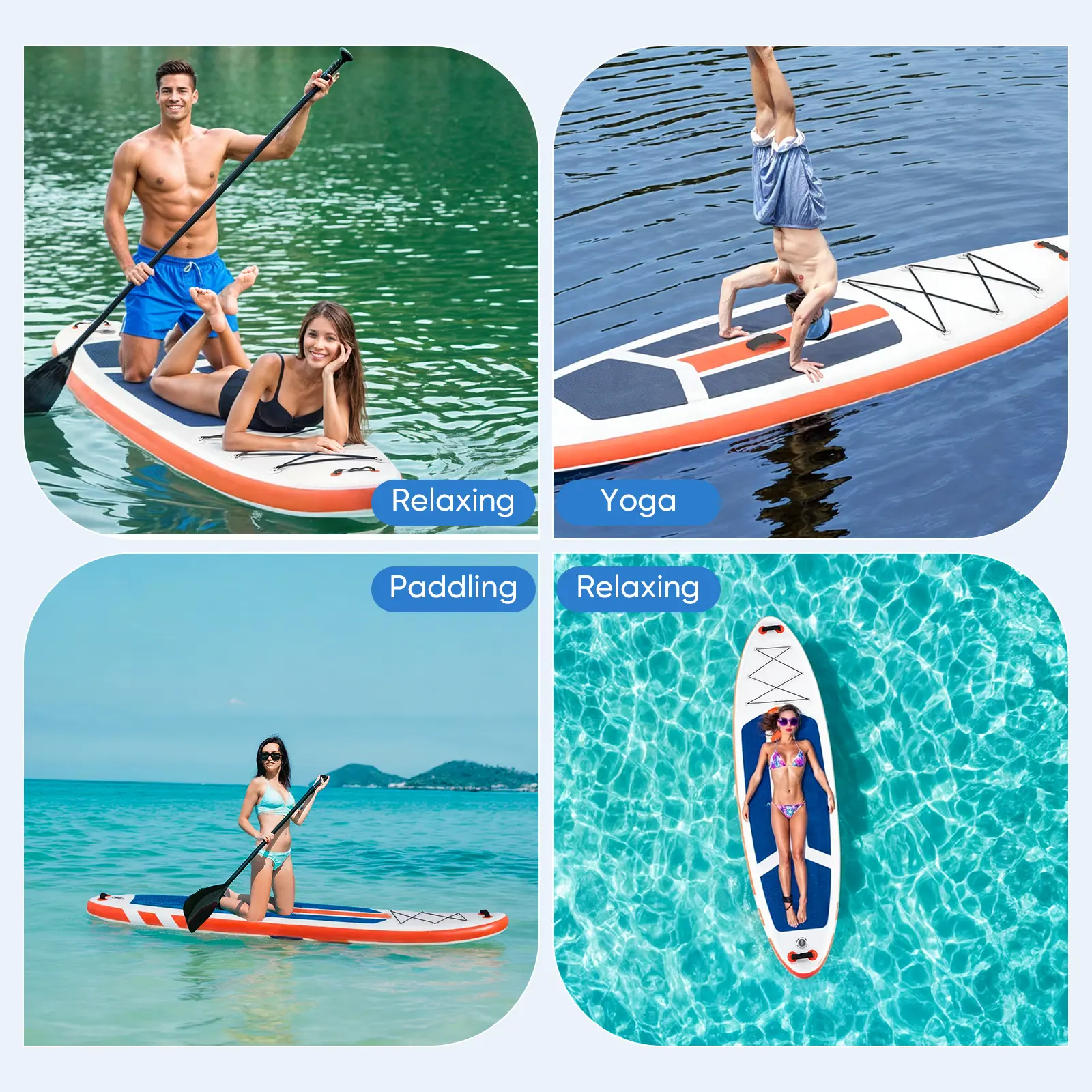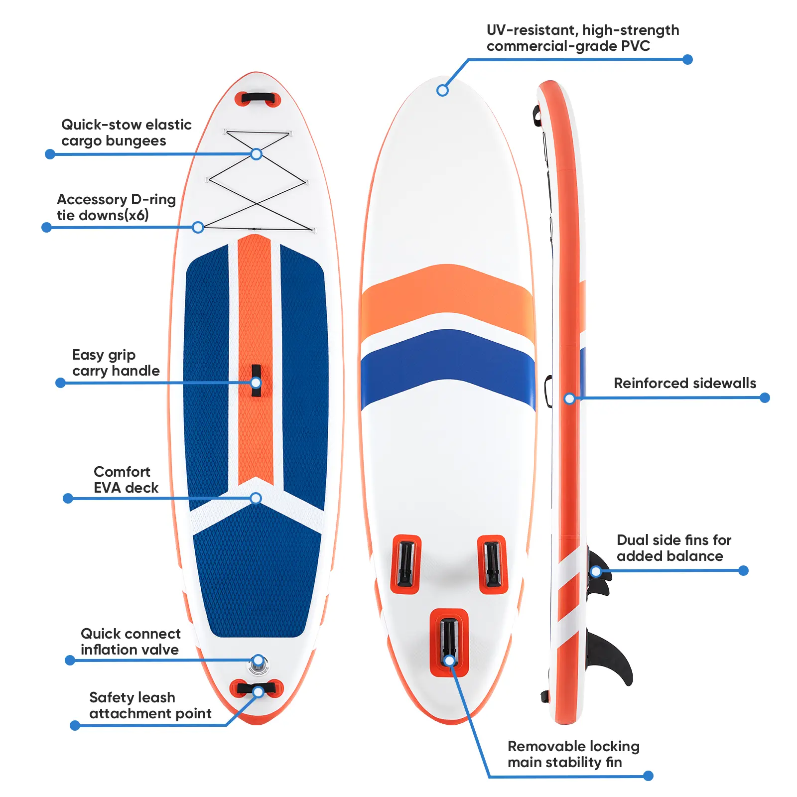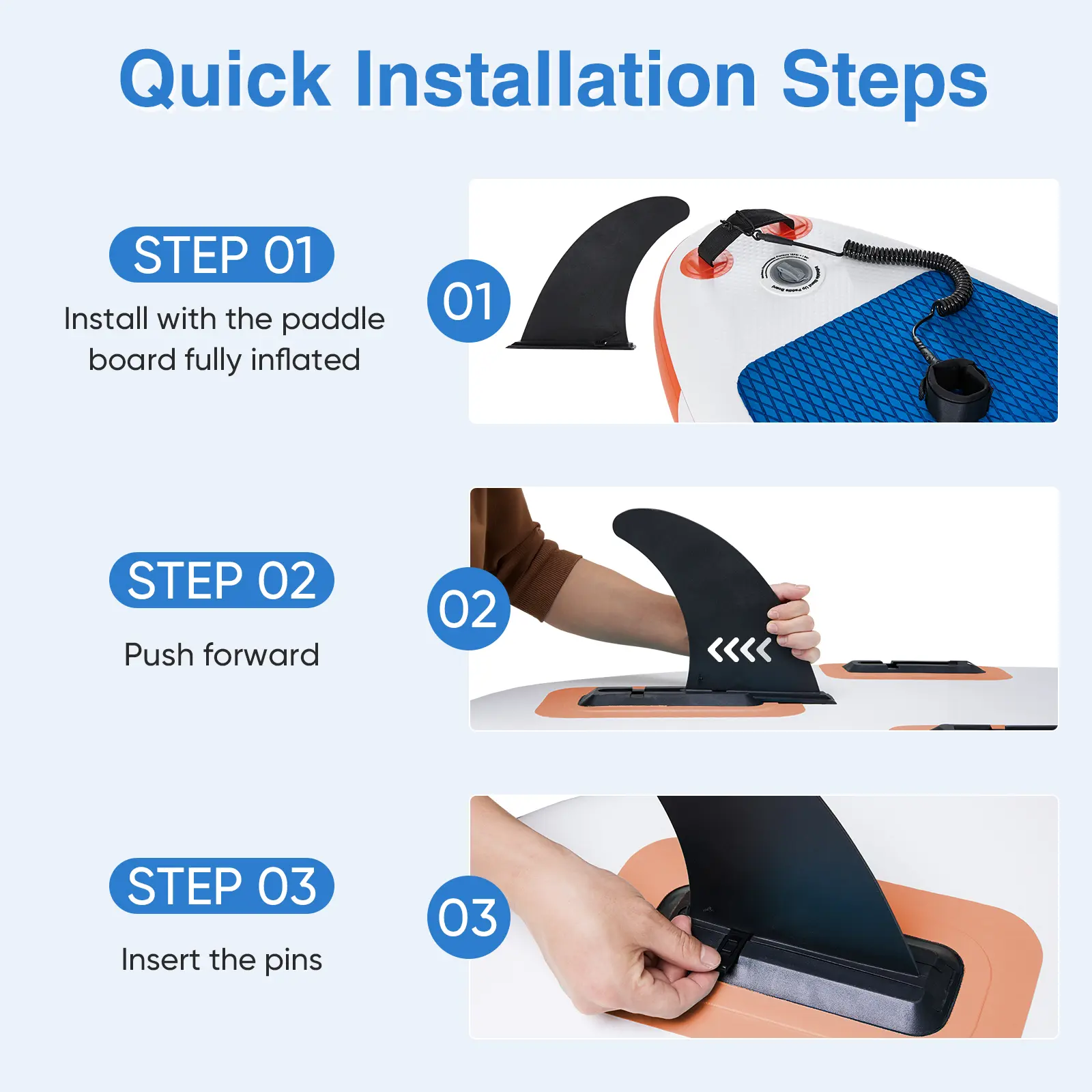 ·【Stable&Comfort】The paddleboard is equipped with 3 bottom fins, allowing you to glide and steer more steadily and control the paddleboard better when standing on it. The upgraded non-slip EVA deck pad provides you with a good cushion, you will stand more stably and effectively prevent slipping.