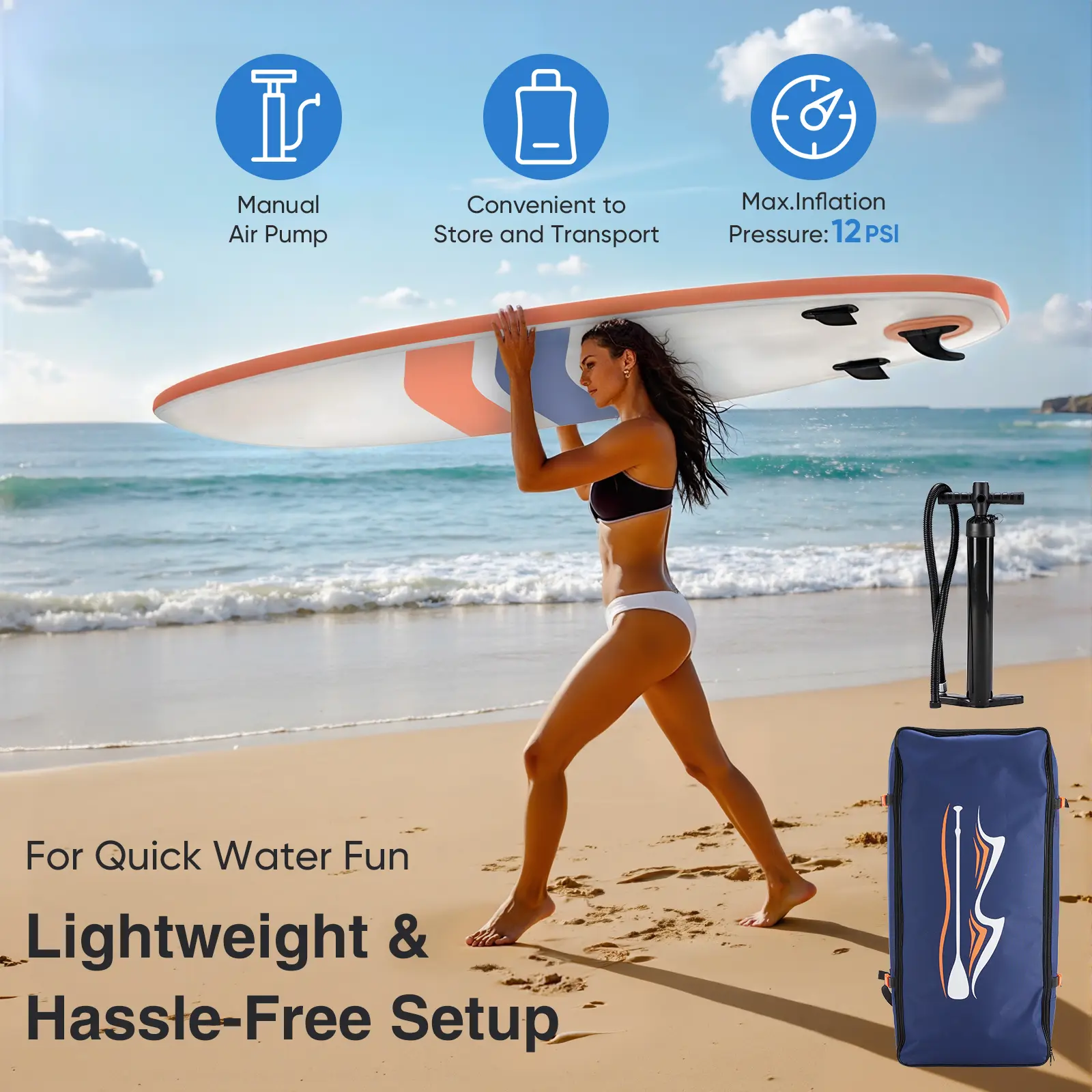 ·【Easy Transport】Inflatable paddleboard is easily deflated and rolled up for convenient storage and transportation. with a high-quality padded backpack for convenient transportation. The stand up paddleboard also includes a strap that allows you to secure the board from one side, making it easier to carry when the backpack is not needed. It's ready for water adventures in the sea, river, or lake.