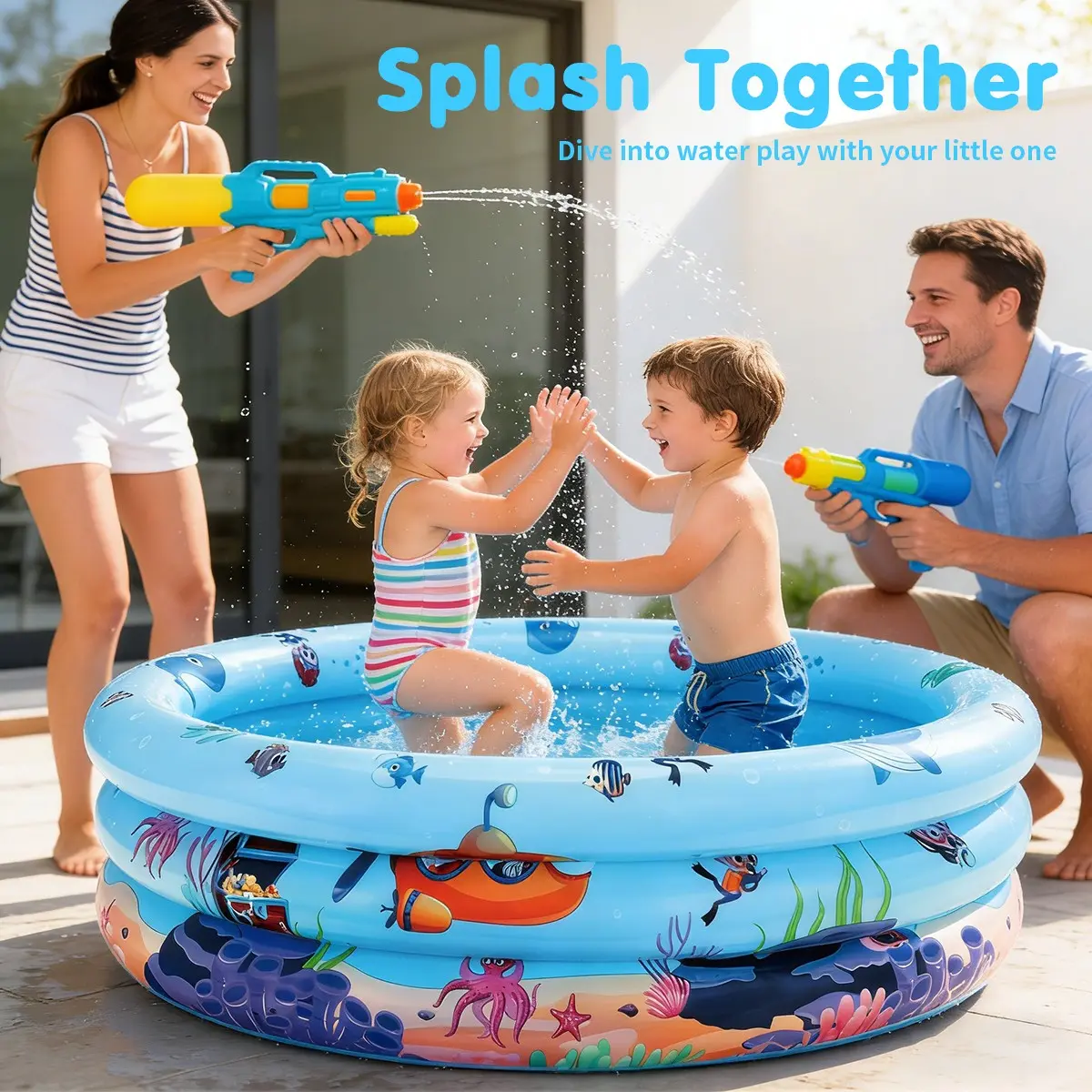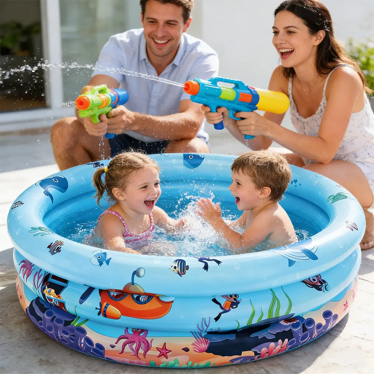 Inflatable Swimming Pool Ocean Animal Pattern Triple Ring Thickened Family Water Play Fishing Multi-Functional Best Parent-Child Interactive Toy Gift