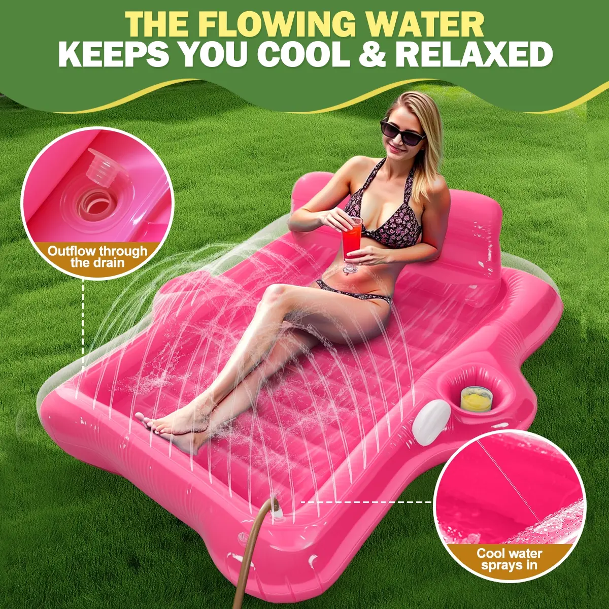 ·【AUTOMATIC SPRAY COOLING】Still having trouble with your floatation bed getting hot while you're sunbathing? With our new upgraded floatation beds that automatically spray to cool you down, just plug in the hose and enjoy your sunbathing.