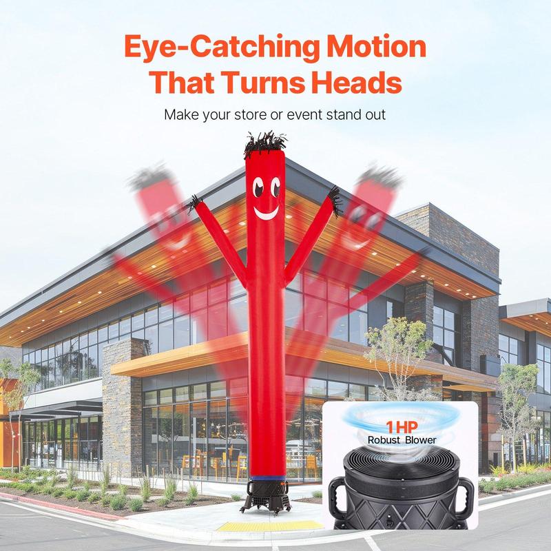 ·Powerful 1 HP Blower: Our 1 HP blower delivers strong, high-frequency air output, bringing your inflatable tube man to dance with dynamic, eye-catching moves. Operating quietly at ≤ 90 dB, it is euqipped with 4 swivel wheels, dual handles, and a 13.12 ft (4 m) power cord, moving and setting up your inflatable tube man is a breeze!