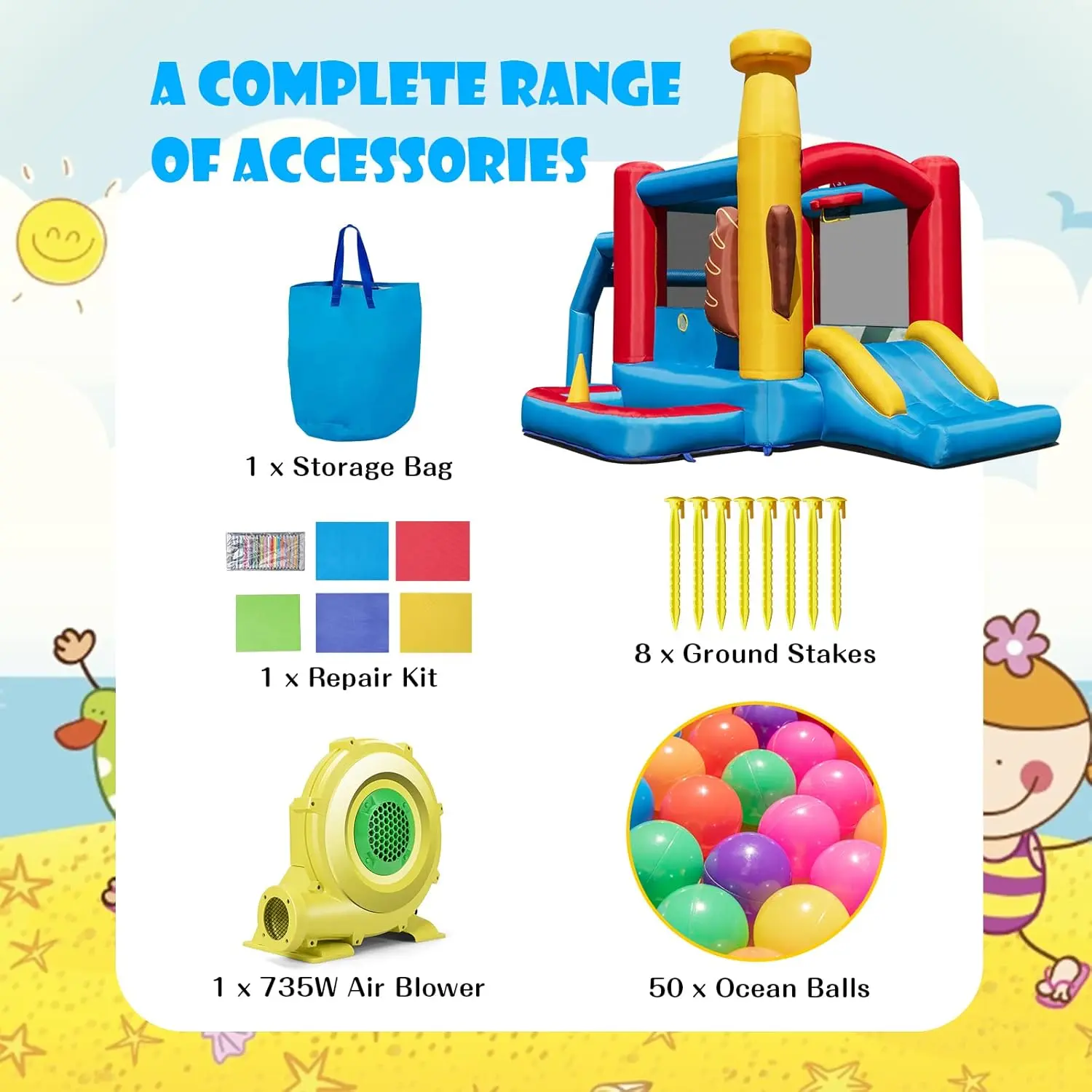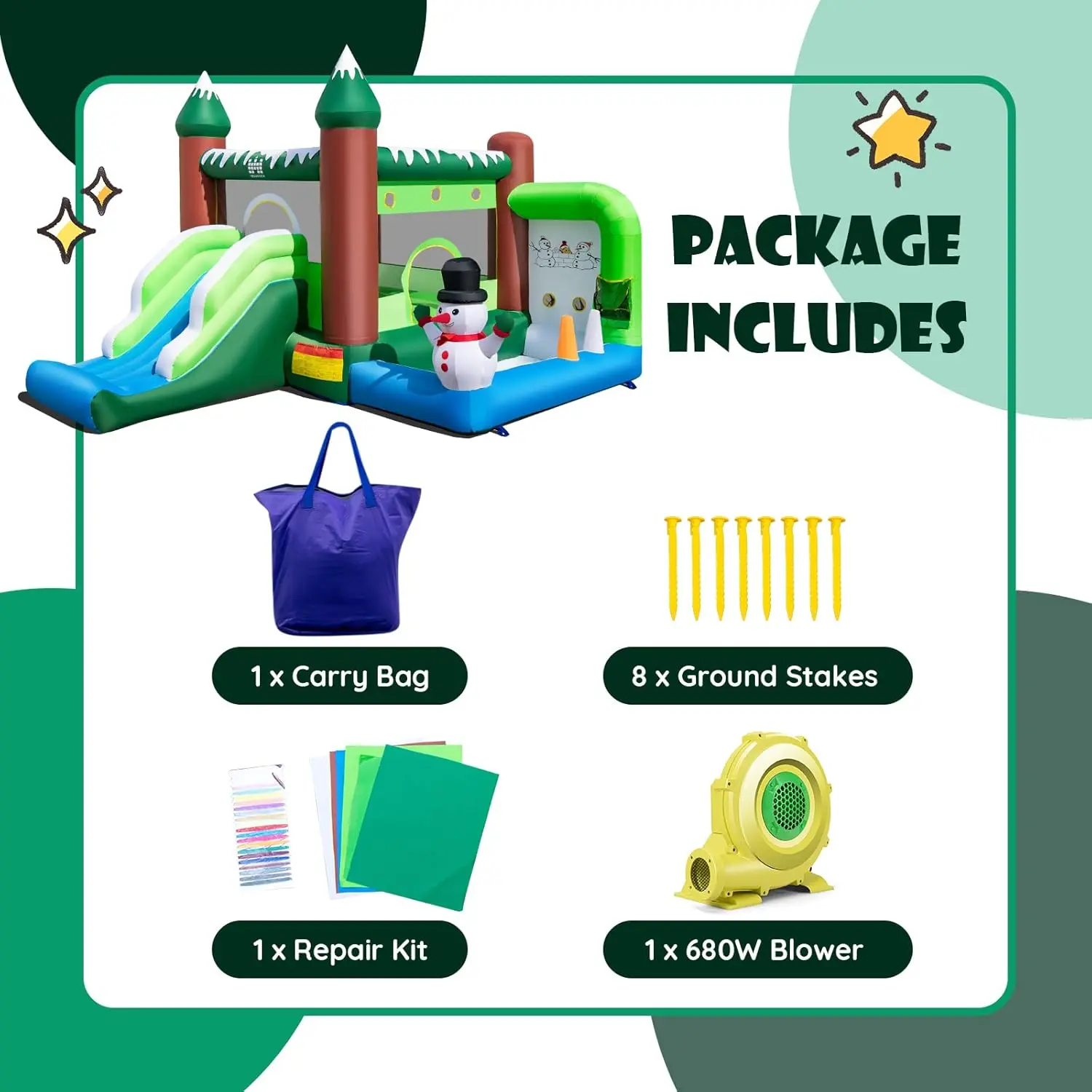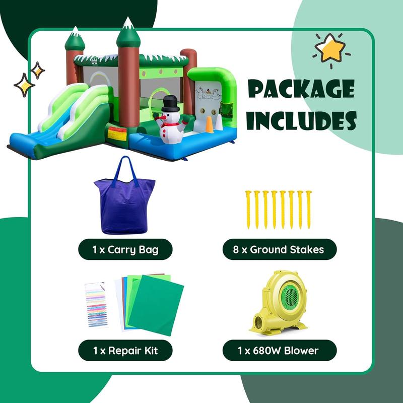 ·【Multiple Functions & Ample Gameplay】 The luxurious inflatable water bounce house features a variety of functions such as bounce, slide, water cannon, ball pit pool and large paddle pool. Children can experience climbs, glides, jumps and shoots, which will promote intellectual development while exercising. This water slide is a rational choice for family entertainment.