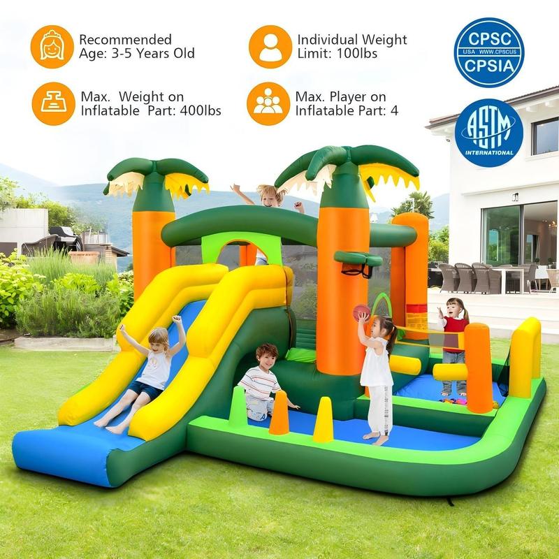 ·【Large Playing Ground for 5 Children】 The inflatable water park bounce house can accommodate up to 5 children at the same time, and most importantly, the castle part can only accommodate 3 people at most. In addition, the total weight capacity of this water slide is 300lbs and the kid who is playing on the castle should be under 100lbs. Our water slide is suitable for children aged from 3 to 10 years old.