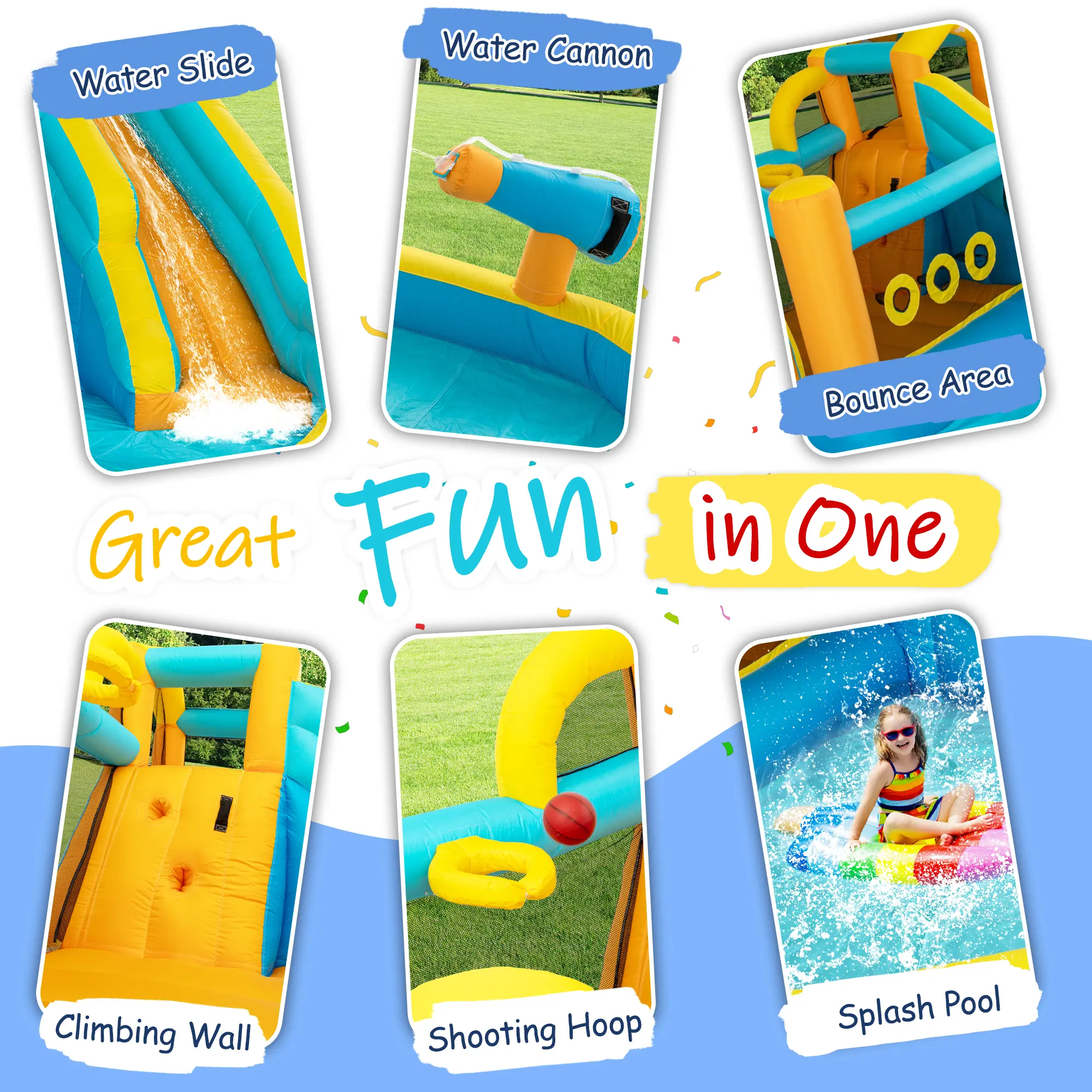 ·【Material Safety,Durable and Sturdy】We always prioritize safety first.The inflatable water park uses environmentally friendly materials that are non-toxic and odorless.It features double seams and double lining to ensure stability and durability.Meanwhile,our inflatable water slide is equipped with safety nets and buffer zones to effectively prevent falls in slippery environments,providing peace of mind.