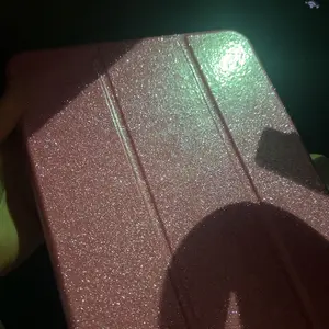 The case is slim and lightweight, making it easy to carry. The smooth material doesn't attract dust, and it's easy to clean. It remains bright and shiny, ensuring your iPad stays looking new. Choose from various glitter cases like red, purple, and more.