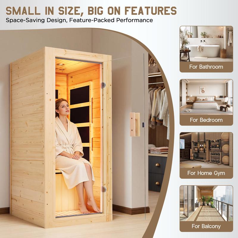 Built for Outdoor Durability: Designed with a premium asphalt shingle roof, ridge cover shingles, top cover and an integrated waterproof layer, this outdoor infrared sauna offers reliable, year-round protection against rain, humidity, and mold