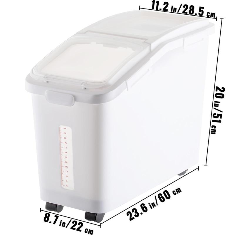 ⢠ăHIGH-QUALITYă - The highlight of this product is that the rice bin has a transparent window and scale, which allows us to observe the allowance in the barrel and replenish it in time. At the same time, designed with high-quality food-grade PP and PET material, this commercial flour bin is convenient to store food and will not easily be contaminated. Furthermore, it is made of thickened 3 mm wall, which provides strength and durability.