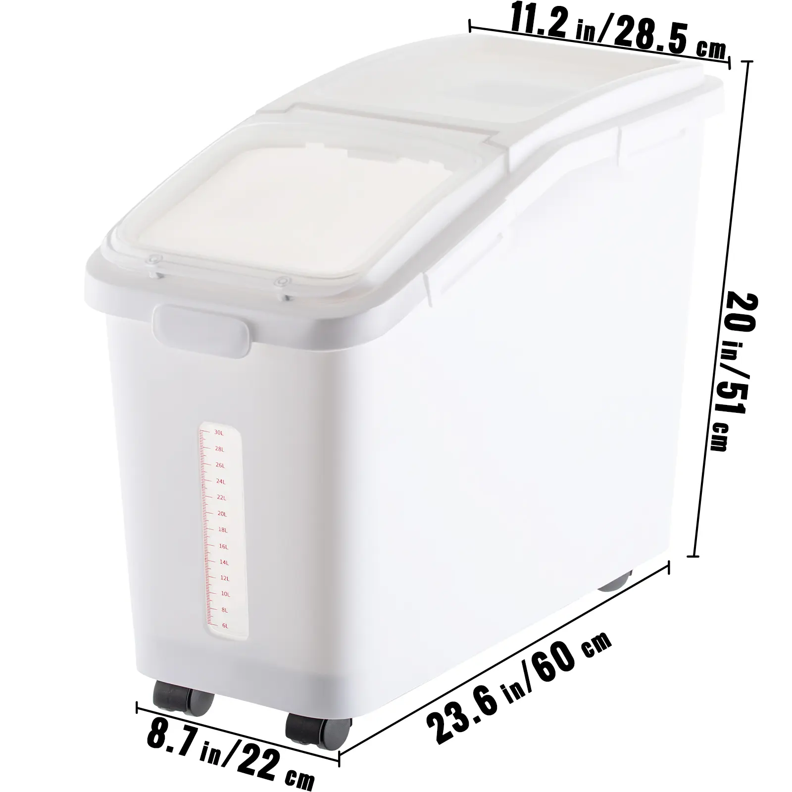 • 【HIGH-QUALITY】 - The highlight of this product is that the rice bin has a transparent window and scale, which allows us to observe the allowance in the barrel and replenish it in time. At the same time, designed with high-quality food-grade PP and PET material, this commercial flour bin is convenient to store food and will not easily be contaminated. Furthermore, it is made of thickened 3 mm wall, which provides strength and durability.