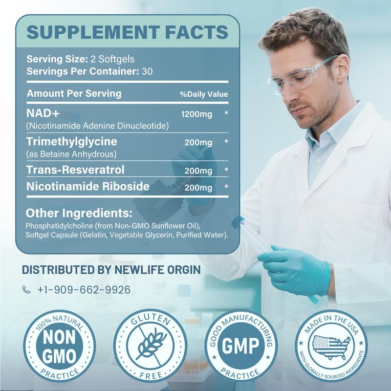 ·Third-party authoritative certification:Third-party batch verification guarantees potency and safety. Free from GMOs, gluten, soy, dairy, and artificial additives. The 1800 mg liposomal complex ensures direct cellular NAD⁺ delivery via non-GMO sunflower-derived phosphatidylcholine, optimizing stability and gastrointestinal tolerance.