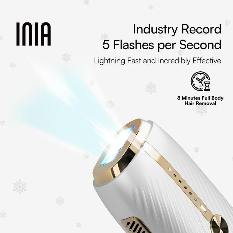 ·Bid adieu to lengthy hair removal processes. INIA HAUTE boasts a rapid-fire capability of 5 flashes each second, combined with an Auto-Glide feature for smooth, comprehensive body treatments, reducing chances of any missed areas. Select from 5 different power levels to address even the most resilient hair.