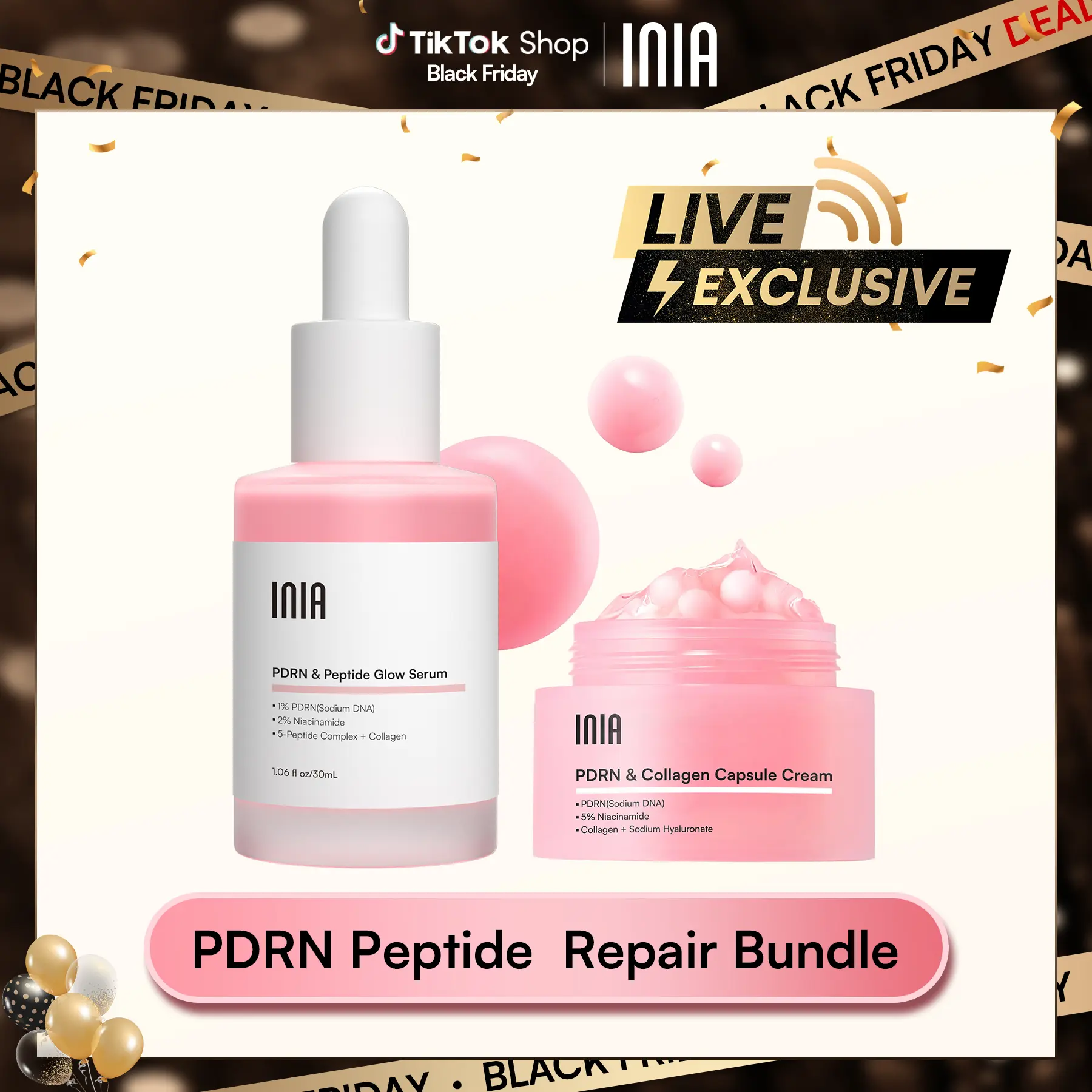 5. 【LIVE EXCLUSIVE】INIA PDRN + Peptide Repair Bundle – Cream & Serum Duo for Deep Repair & Radiant, Firmly Hydrated Skin with Salmon DNA, Peptides & Niacinamide, Safe for Sensitive Skin