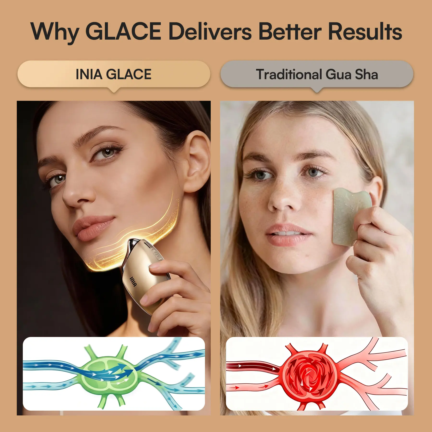 I ordered the gold-colored oval-shaped Glace 7 in 1.They sent me another product,,,We take care of our skin with INIA products until we achieve Gold Glace Face... Their customer service is fantastic. They have answered my questions. Thank you for your service.