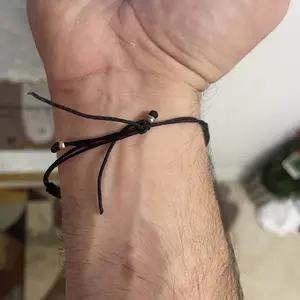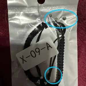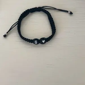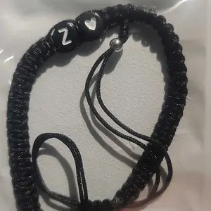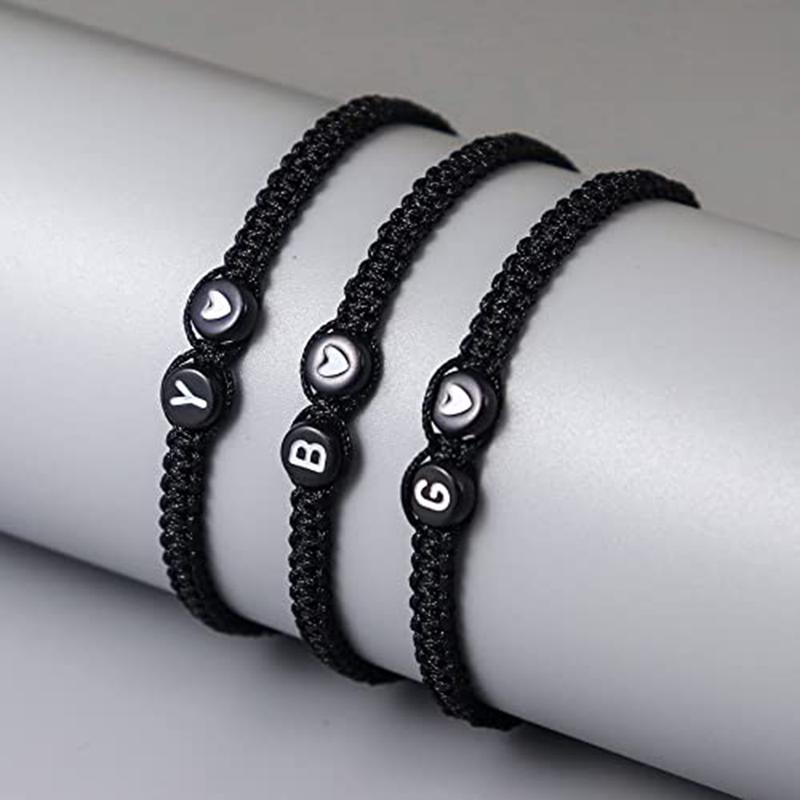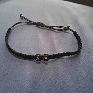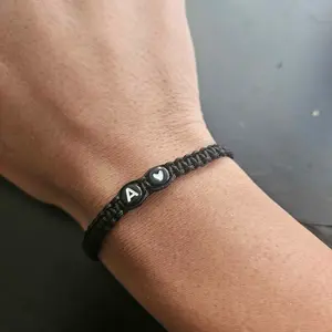 Made of polyester rope, it's comfortable and safe. Exquisite, hand-woven by craftsmen, it's a fashionable handicraft. The bracelet features a heart and letter charm, like "A" in the image.