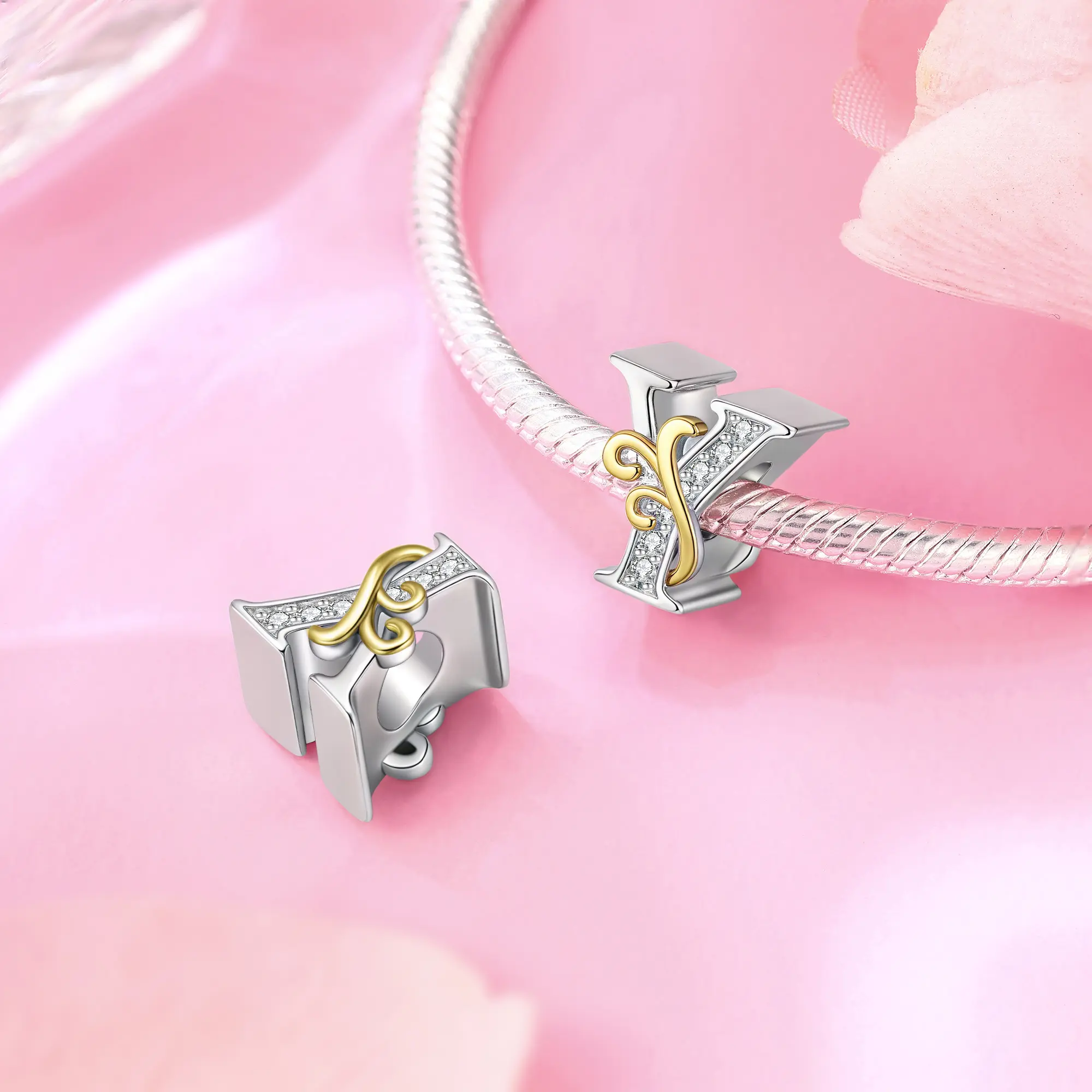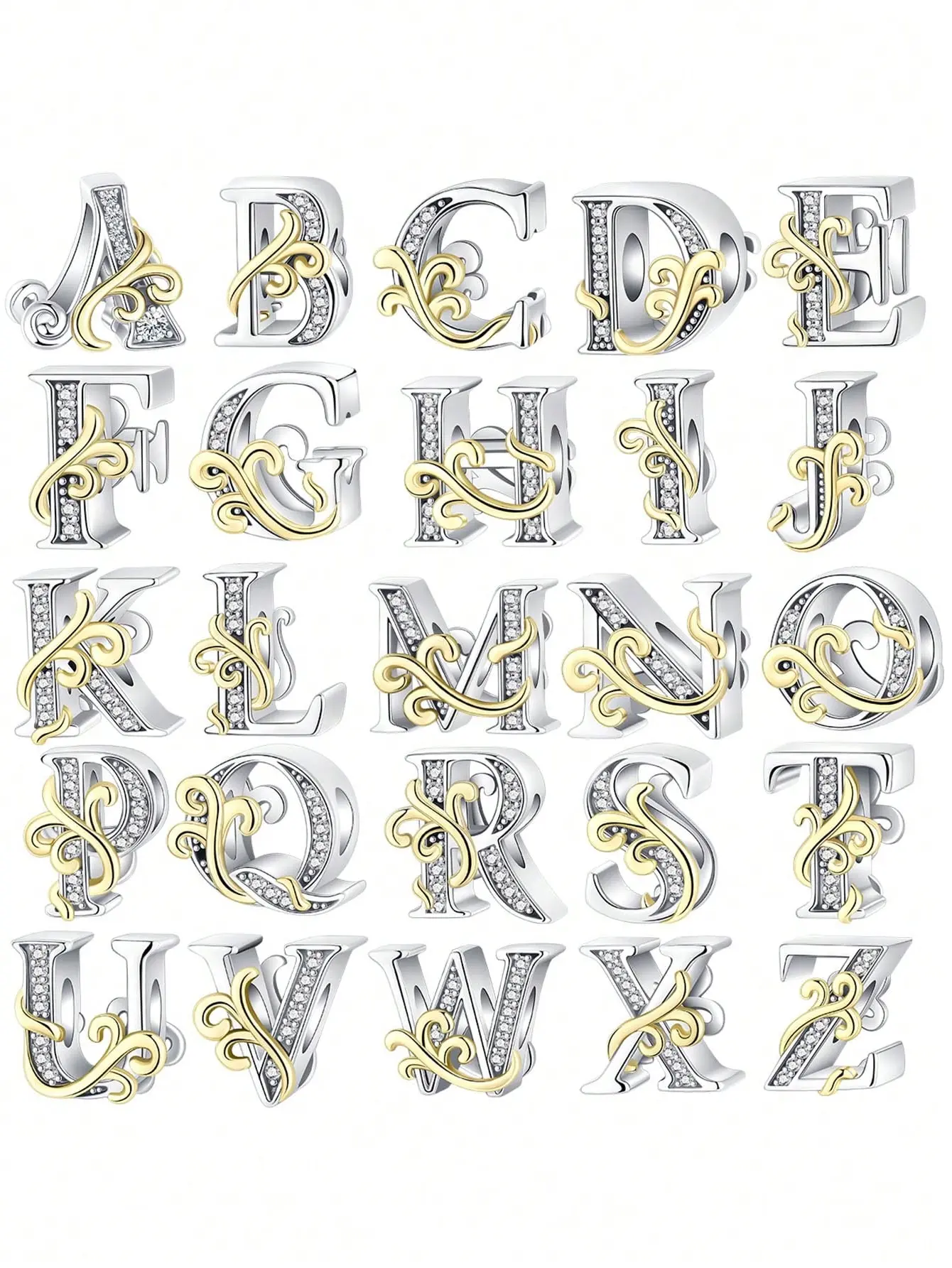 Alphabet Initial Charm Beads | Two-Tone CZ PavedSpell your story with these elegant initial charms - personalize your bracelet with your name, loved ones, or meaningful words!