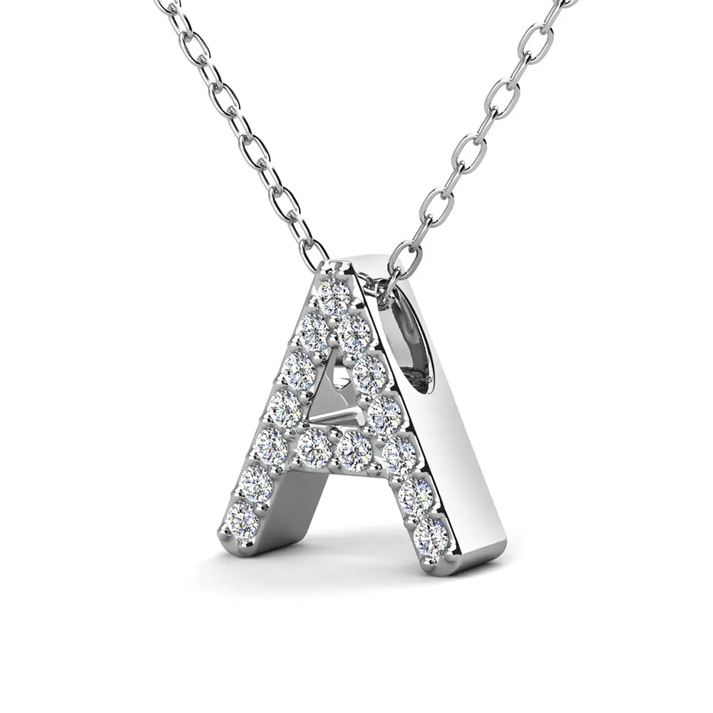 Celebrate your unique charm with the Ethereal Collection 18k White Gold Plated Initial Letter Pendant Necklace. Adorned with dazzling Simulated Diamond crystals, this elegant piece features your choice of initial from A to Z, combining timeless simplicity with refined style. Its delicate design is perfect for layering or wearing on its own for a subtle yet chic look.