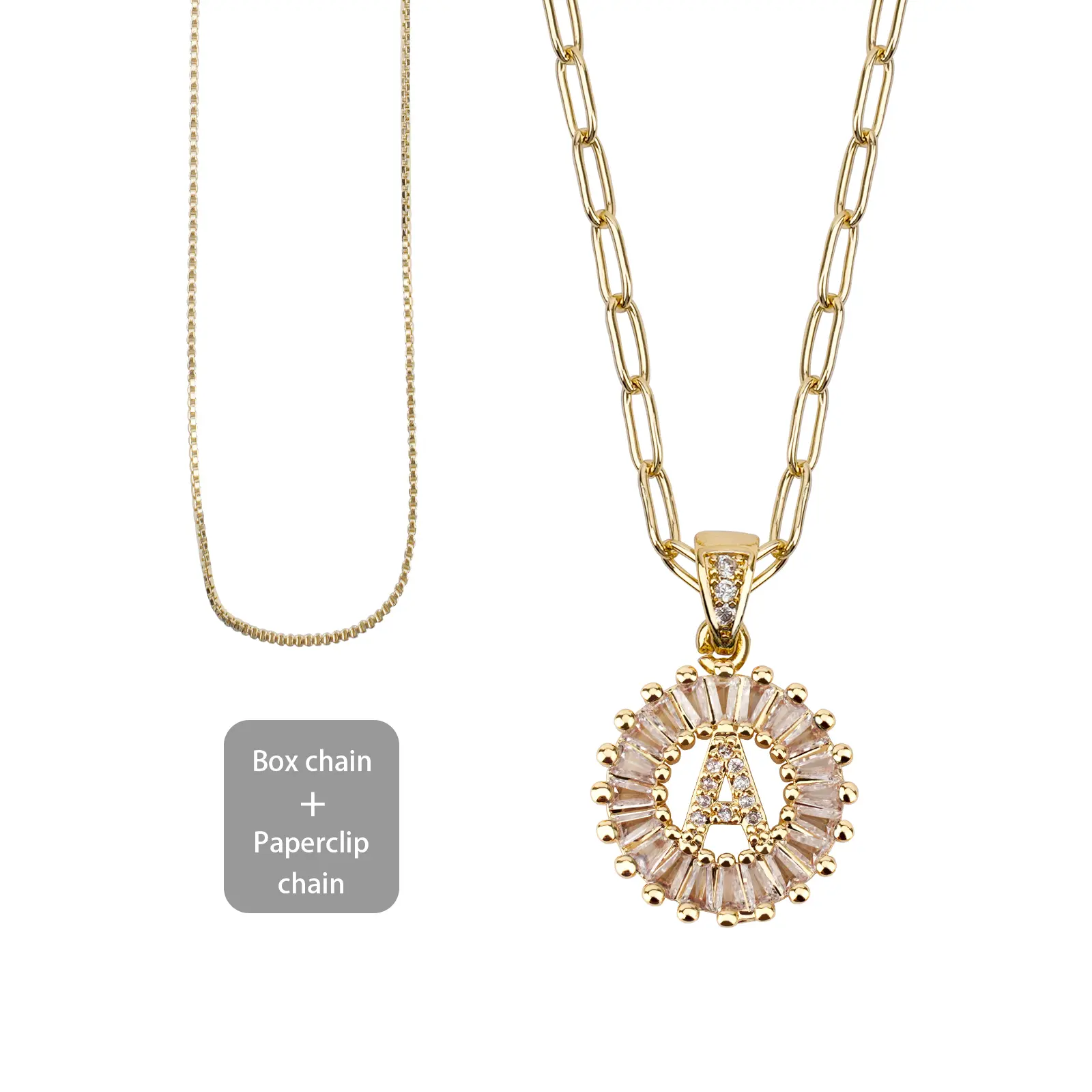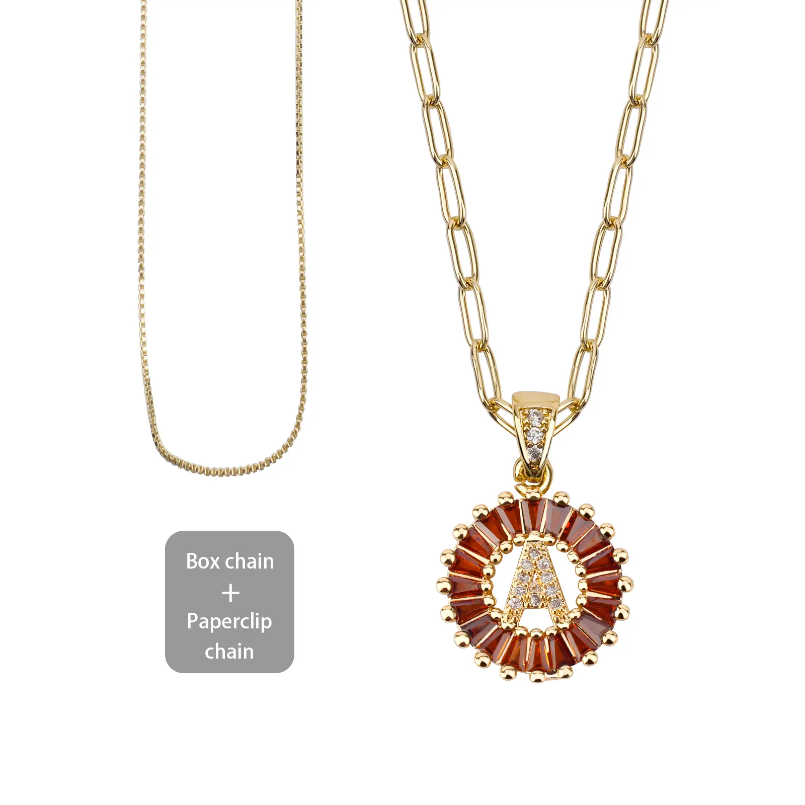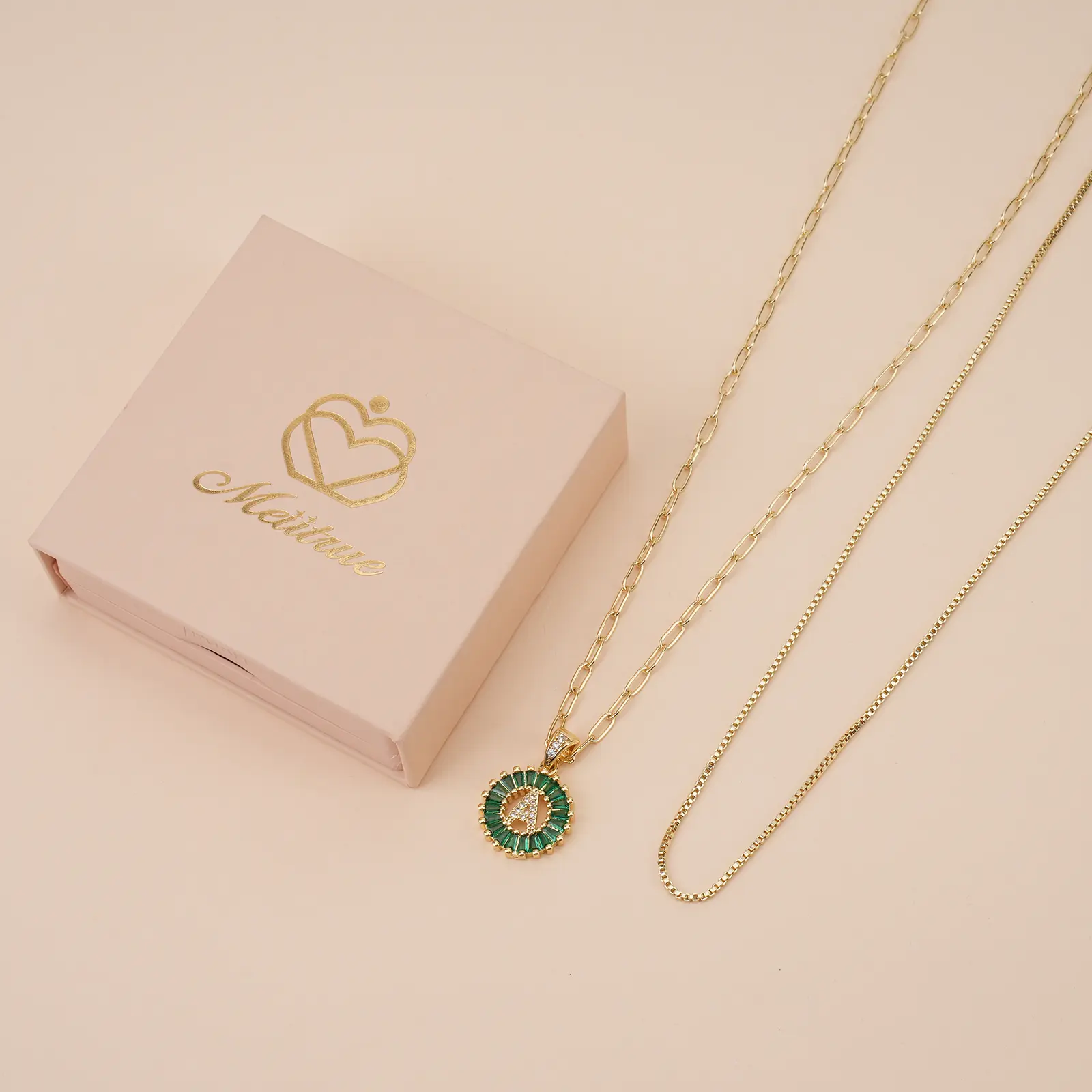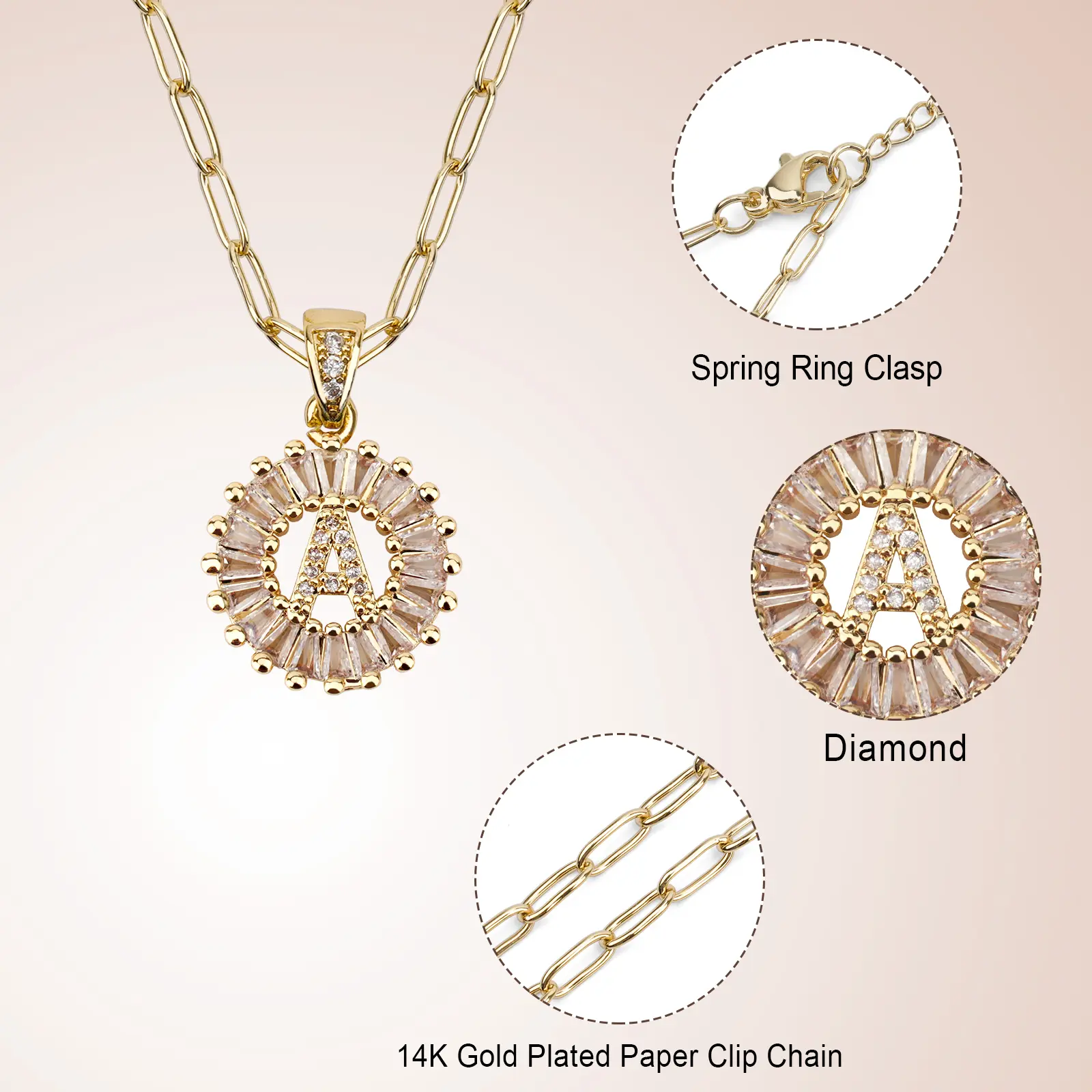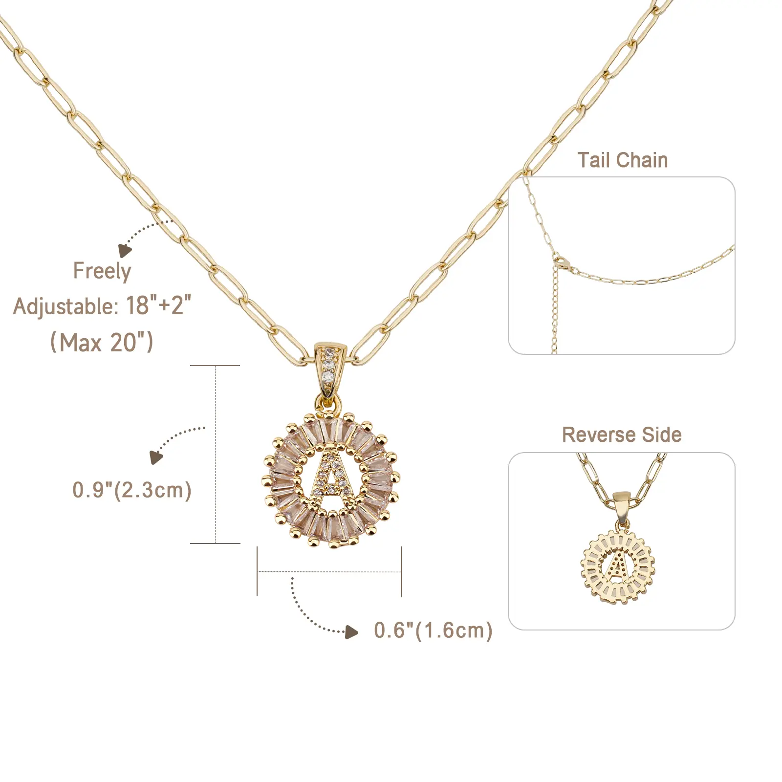 Elevate your style with our 14K Gold Plated Initial Necklace Set, featuring a stunning pendant adorned with premium cubic zirconia stones. Each pendant showcases your chosen initial surrounded by a halo of radiant, multi-colored cubic zirconia, crafted to deliver exceptional sparkle and lasting brilliance.