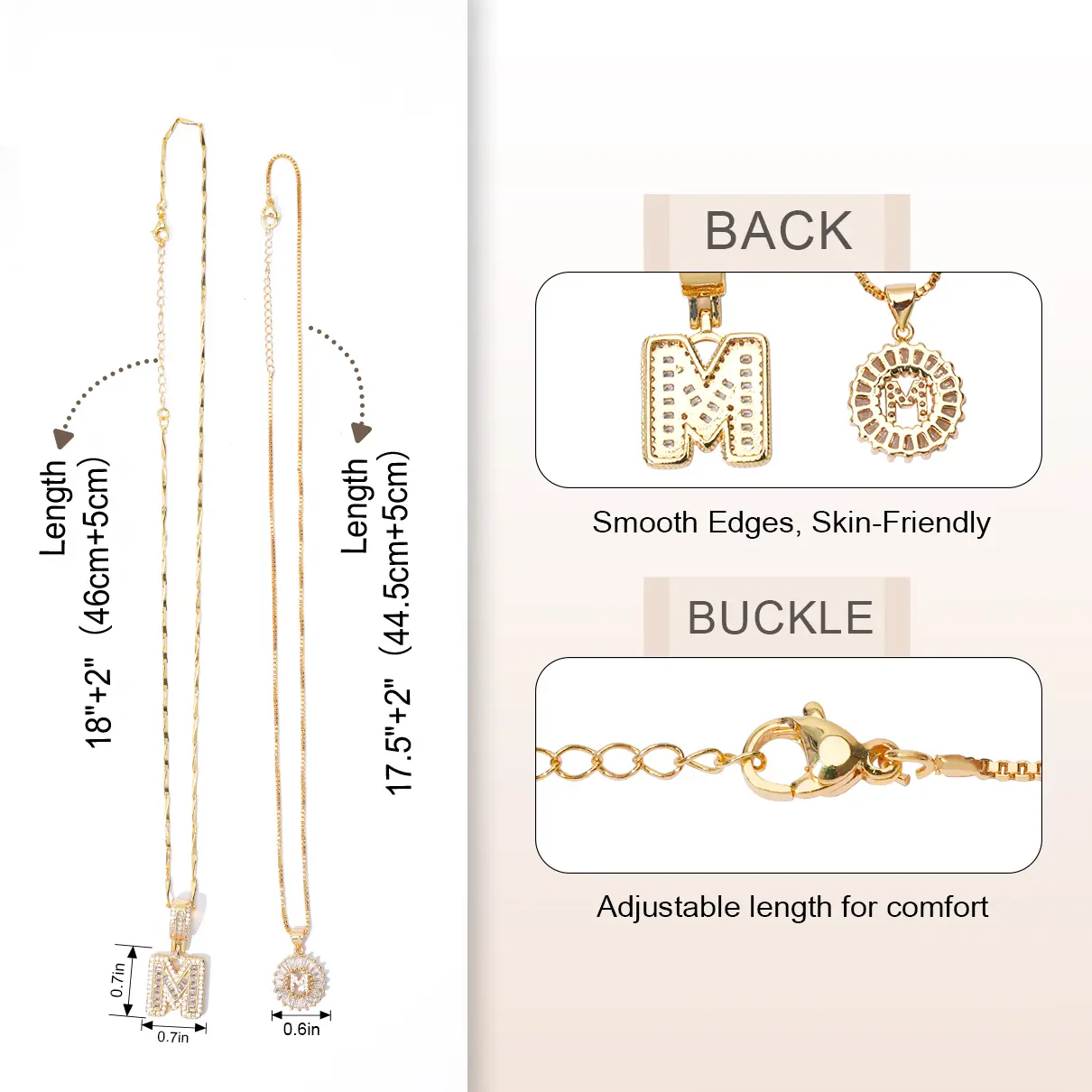 The necklaces feature an adjustable chain length, ranging from 17'' to 19''. This allows you to find the perfect fit. The secure clasp keeps your necklace comfortably in place all day long. The adjustable length ensures versatility in styling.