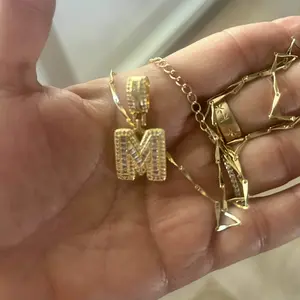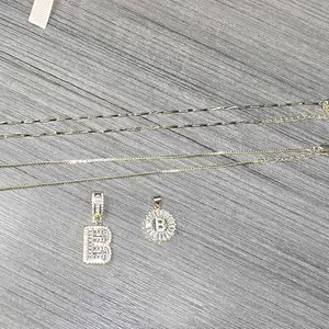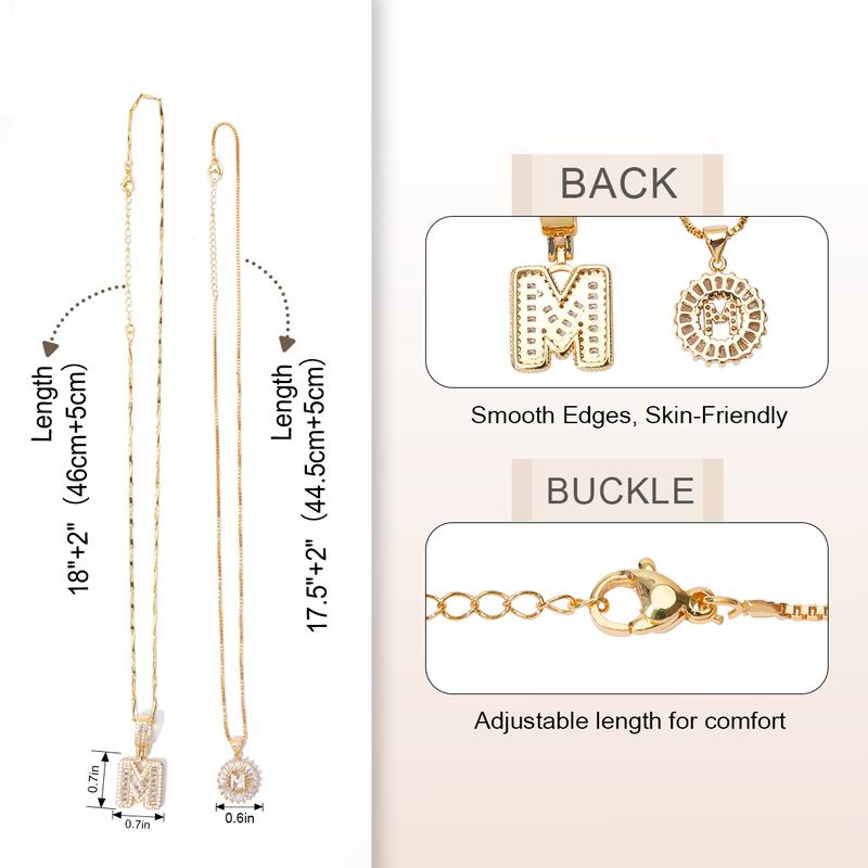 This stylish necklace set features letter pendants, each embellished with sparkling zircon stones. Choose the initial that holds special significance for you, making this piece a perfect personalized accessory. The set includes two necklaces, one with a rectangular pendant and the other with a circular pendant.