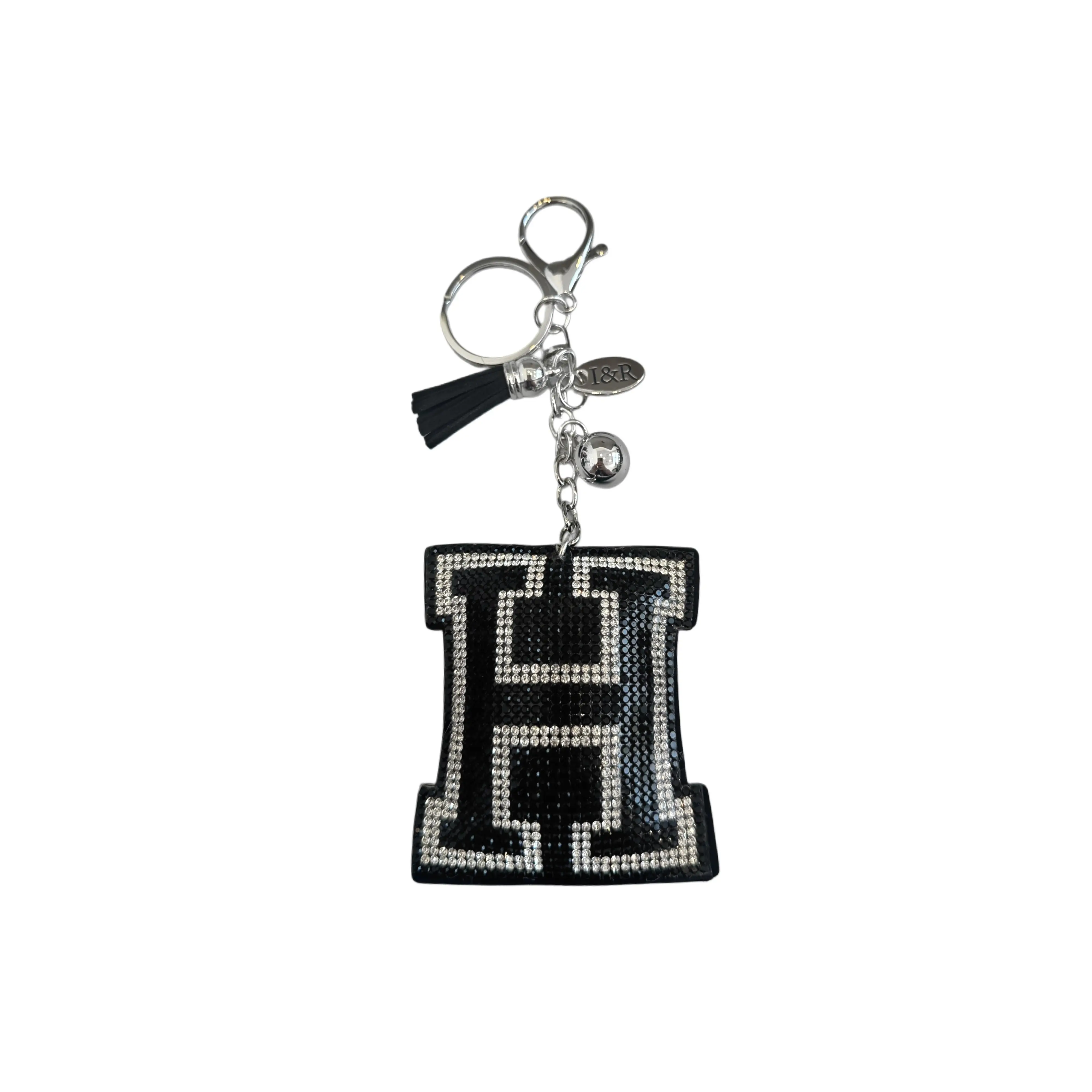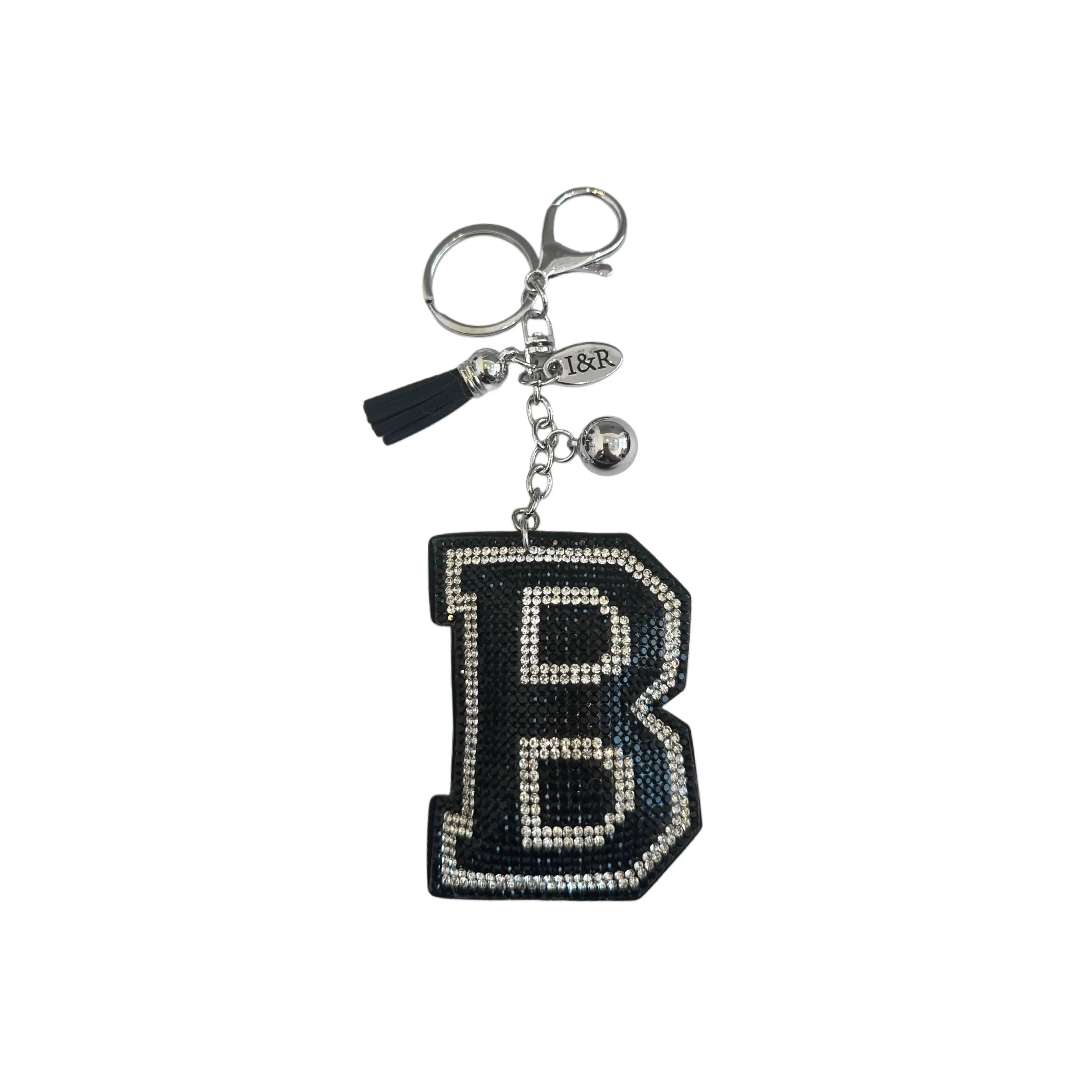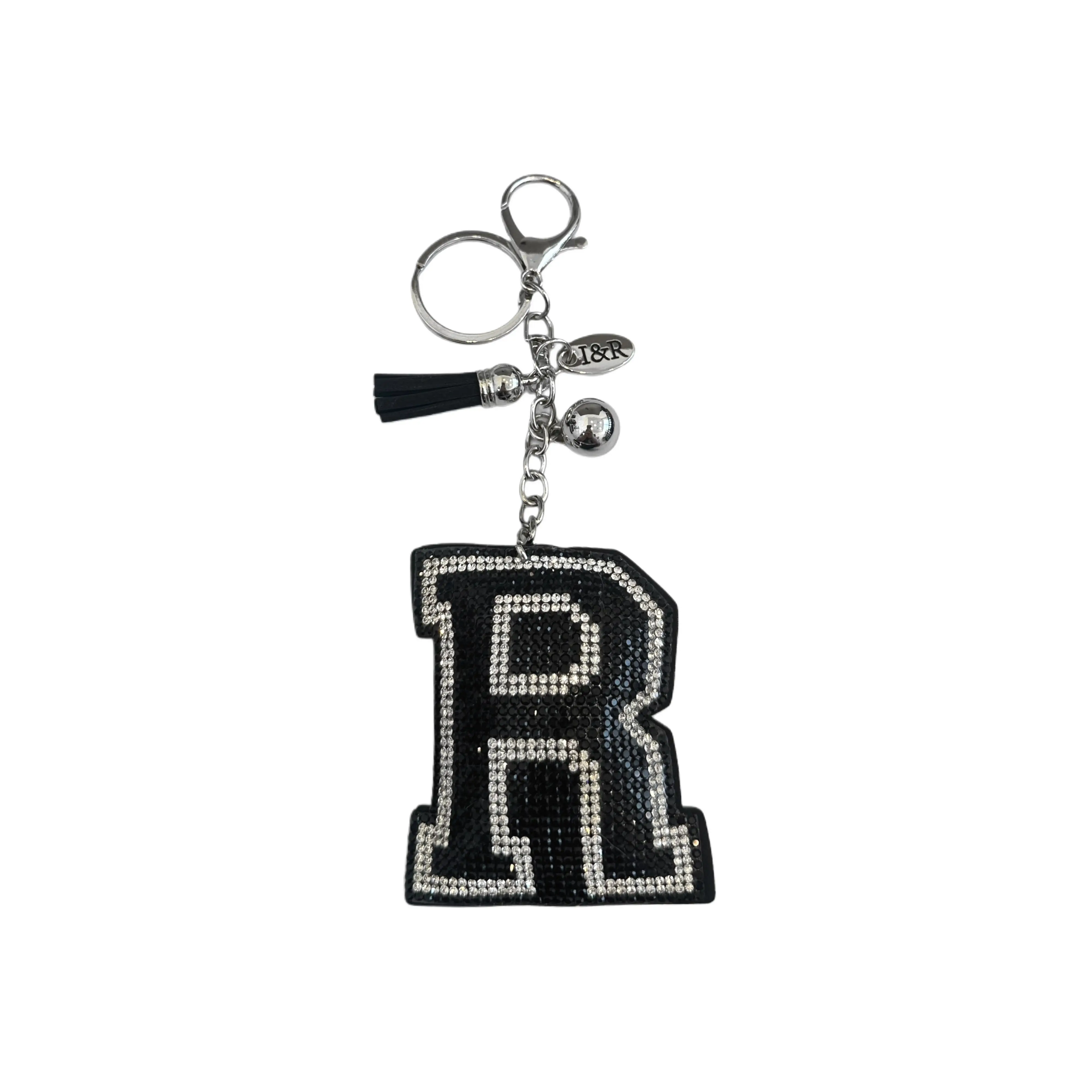 Iris Black Studs Initial Letters Charms Decorative with Keychain Pendant (#CL13) By Iris & Rainbow